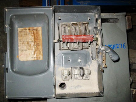 Square “D” Company Transformer with Safety Switch. Type: T-53018. Serial No: 69752. Catalog no. H362. Series: A. Standard HP: 15. Maximum HP 30. Primary voltage: 240 / 480V. Secondary voltage: 120 / 240V. Continuous KVA: 25, 60 amp, 60 Hz. 3 phase, 600VAC. Approximate weight: 225 lbs. Overall dimensions: 1ft. 6-1/2 in. L x 2 ft. 1 in. W x 1 ft. 8 in. H.(H17).