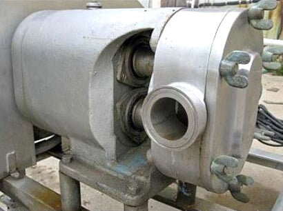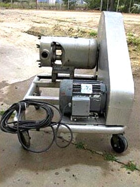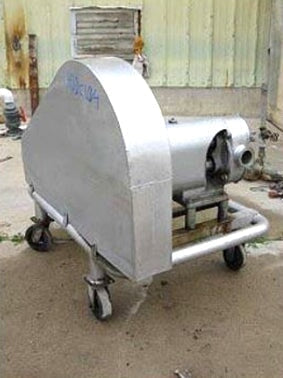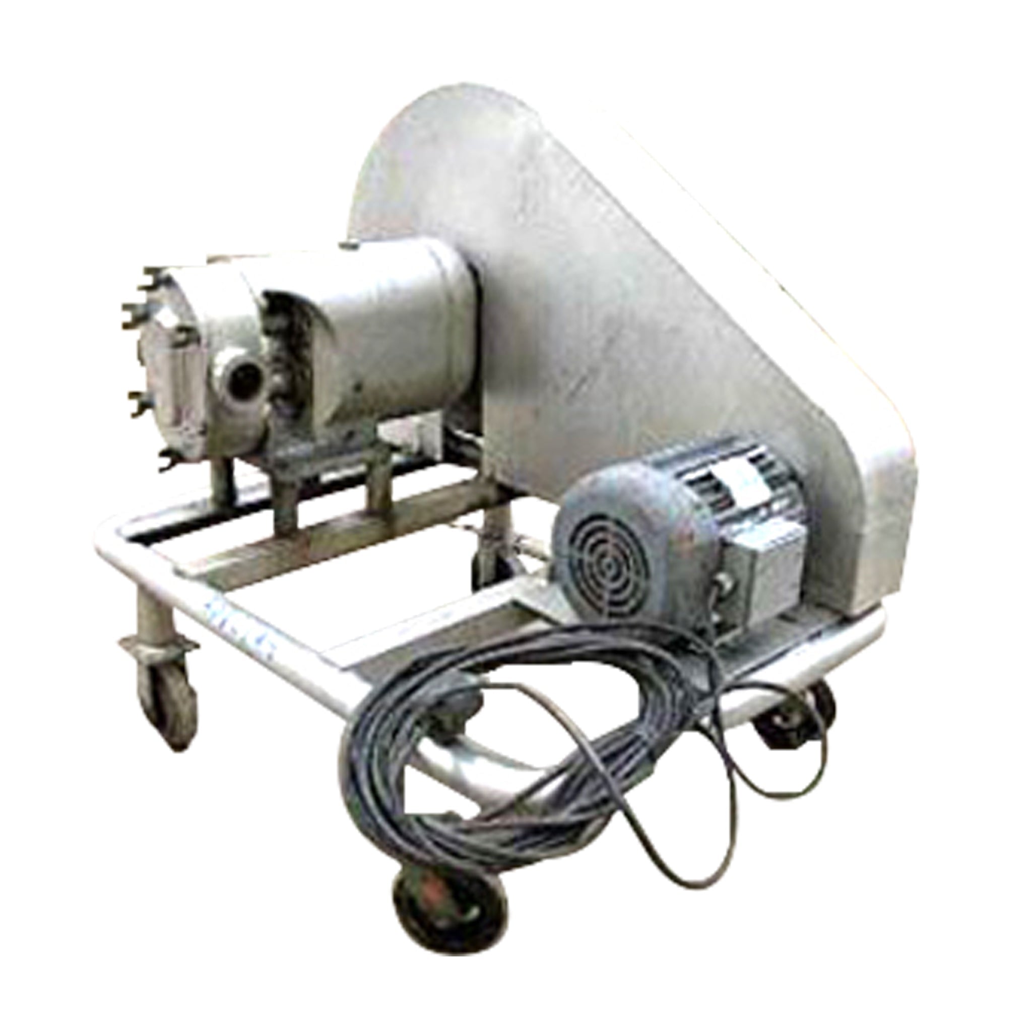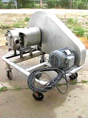 SSP Positive Displacement Pump on Portable Base. Century motor: 5 HP, 1745 rpm, 230/460V, 17.4/7.2 amps, sf: 1.0, 60 Hz, 3 phase. Inlet/outlet (2) 2-1/2 in. ID Tri-clamp. Comes mounted on a stainless steel portable base with pulley shroud. Overall dimensions: 4 ft. 1 in. L x 2 ft. 9 in. W x 3 ft. 5 in. H.