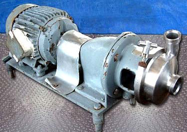 St. Regis/ Crepaco Centrifugal Pump. Model N/A. S/N 6P-20260. 304 stainless steel construction with A3 rating. Pump has a 5 in. dia. impeller. Inlets: (1) 2 in. ACME fittings Outlets: (1) 1-1/2 in. ACME fittings. Overall Dimensions: 2 ft. 10 in. L x 1 ft. W x 15 in. H.