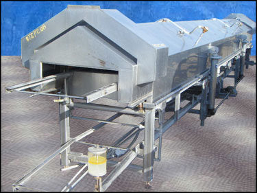 Stainless Cooling / Pasteurizing Tunnel. Maximum aperture/clearance above belt: 2 ft 4 in. W x 2 in. H. Infeed/exit: feed Height: 3 ft. 6 1/2 in. (1) Baldor industrial electric motor - 1 hp, 1725 rpm, 230/460 V, 3/1.5 amps, 60 Hz, 3 phase. (1) 1994 Winsmith gear drive. Model: 917MDT. S/N: 917MDTS2100GC1. Ratio: 15-1. (2) Duff Gear Boxes. Model/serial: SK2658M1L. (4) Duff worm gear actuators. Model: UM1803-42. Product code: MEACD00A024X. Inlets/outlets: (2) 12 in. x 12 in. vent ports, (8) 1 1/2 in. 150 lb class flg’s. Overall dimensions: 35 ft. 10 in. L x 4 ft 6 in. W x 5 ft. 7 in. H. (BH).