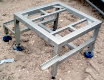 Stainless Steel 2-Step Stairs. Step dimensions: (1) 24 in. L x 10 in. W, (2) 24 in. L x 24 in. W. Final height: 17 in. Overall dimensions: 2 ft. 10 in. L x 2 ft. 7 in. W x 1 ft. 5 in. H.