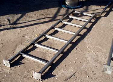 Stainless Steel 7-Step Ladder. Distance between steps: 10-1/2 in. Width of steps: 16-1/2 in. Overall dimensions: 1 ft. 11-1/2 in. L x 4 in. W x 10 ft. 4-1/2 in. H.