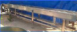 Stainless Steel Belt Conveyor - 7 in. wide, Model 23B-00210, 7 in. chain belt. Overall dimensions 225 in. L x 26 in. W x 63 in. H.