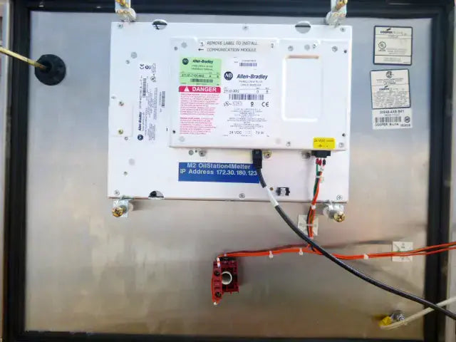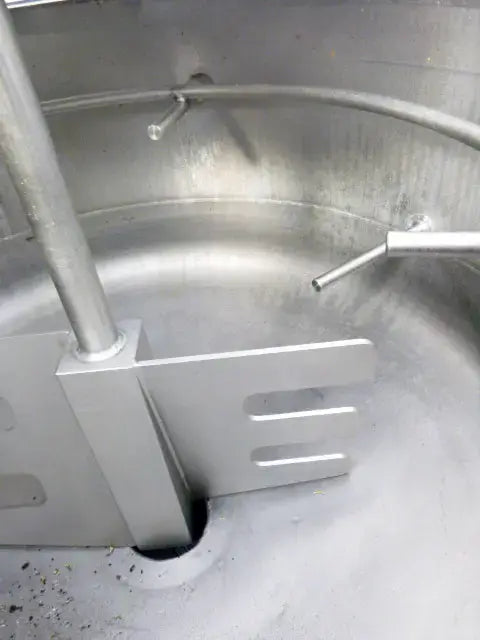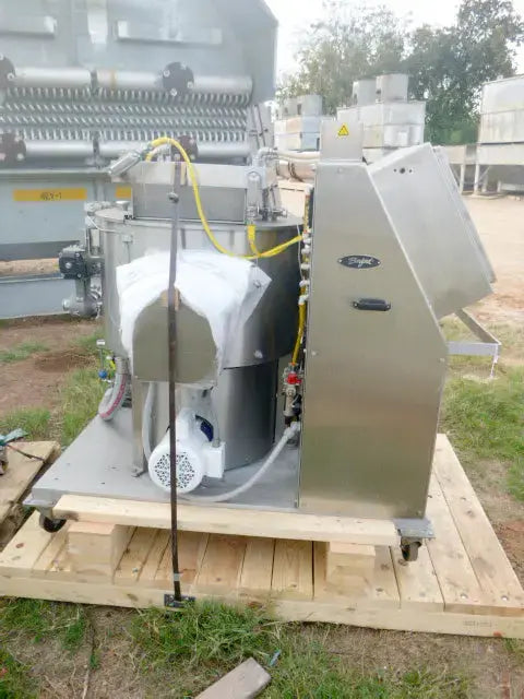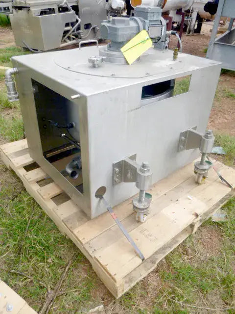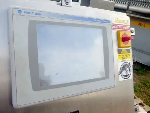 2006 Stainless Steel Burford Butter Melt Mix System. Model: Melt Mix. Main tank capacity: 90 gallons. Auxiliary tank capacity: 35 gallons. The Melt Mix system has been designed to mix a pre-determined amount of product to form “batches” for transfer to other systems. Features include: all stainless steel construction, side sweep agitation, a Flowserve Automax pneumatic actuator, Wilden model 2 diaphragm pump for product transfer, and an Allen-Bradley Panel View Plus Logic Module and Color Touch Display Module in a Type 4X NEMA enclosure. Baldor washdown duty motor: 1 hp, 1725 rpm, 115/230V, 12.8/6.4 amps. Electrical requirements: 208/220V, 50/60 Hz, 1 phase at 30 amps. Overall dimensions: 3 ft. 5 in. W x 5 ft. 6 in. L x 4 ft. 9 in. H. Auxiliary tank dimensions: 3 ft. 5 in. W x 3 ft. 4 in. L x 2 ft. 9 in. H.(ACN850).