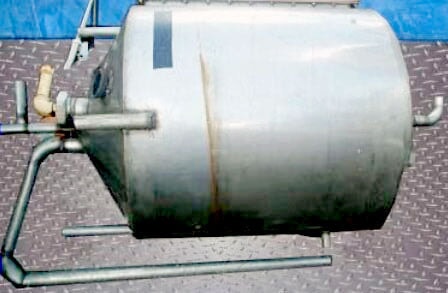 Stainless Steel Cone Bottom and Closed Top Mix Tank- 100 Gallon. Inside dimensions (straight wall): 32 in. D x 30 in. H. 30 in. L x 6 in. W site glass on side. Baldor Industrial Motor, 1/3 hp, 208- 300/460 V, 1725 rpm, 1.8-1.6/0.8 amps, 60 Hz, 3 phase. Boston Gear Speed Reducer, 0.5 input hp (max), 20:1 ratio, 86.25 rpm (final), 342 ft/lbs of torque. Inlets: 1-1/2 in. port (top). Outlets: 1-1/2 in. port, 2 in. port, (1) 3-1/2 in. threaded fittings. Overall dimensions: 41 in. L x 39 in. W x 72 in. H.