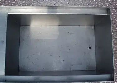 Stainless Steel COP Tank- 30 Gallon. Inside dimensions: 30 in. L x 18 in. W x 14 in H. Outlets: (1) 3/4 in dia. discharge port. Overall dimensions: 5 ft. 1 in. L x 1 ft. 10 in. W x 2 ft. 11 in. H.