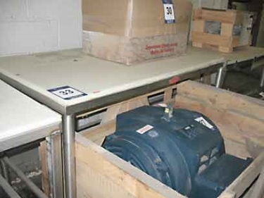 Stainless Steel Frame Teflon Top Table. Dimensions 48 in. L x 30 in. W x 33 in. H.