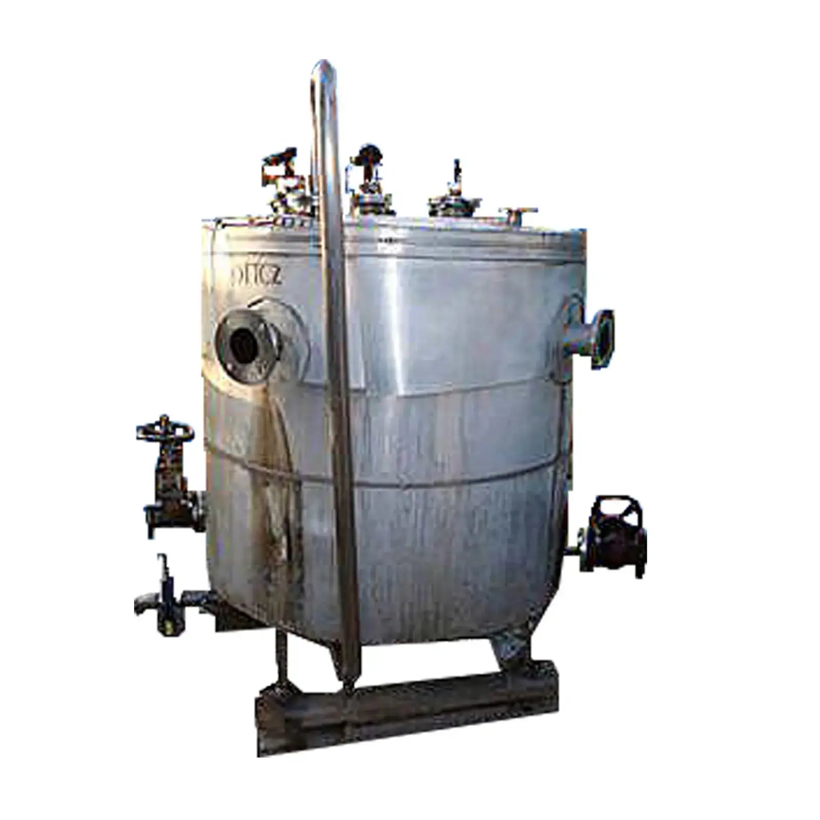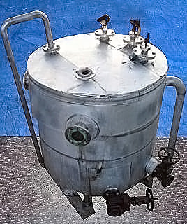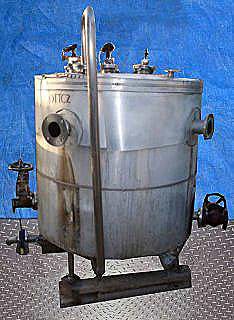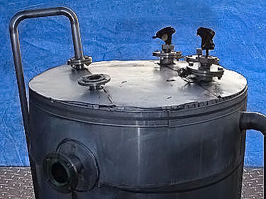 Stainless Steel Insulated Single Shell Tank- 200 Gallon. (3) Brad Harrison level indicators. Inlets: (1) 3 in. dia. port, (2) 2 in. dia. 150lb ANSI flanged ports, (2) 3 in. dia. 150lb ANSI flanged ports. Outlets: (1) 2 in. dia. 150lb ANSI flanged port with butterfly valve, (2) 2 in. dia. 150lb ANSI flanged ports with globe valves. Overall dimensions: 5 ft. 8 in. L x 4 ft. 10 in. W x 69 in. H.(H22).