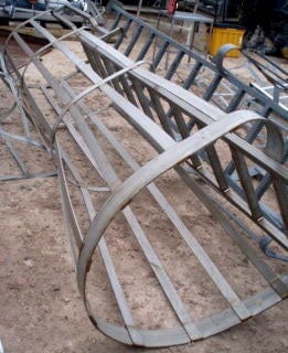 Stainless Steel Ladder with Safety Cage. (15) 1 ft. 4-1/2 in. W steps. Distance between steps: 10-1/2 in. Safety cage height: 12 ft. 6 in. L. Overall dimensions: 3 ft. 3 in. L x 3 ft. W x 18 ft. 4-1/2 in. H.