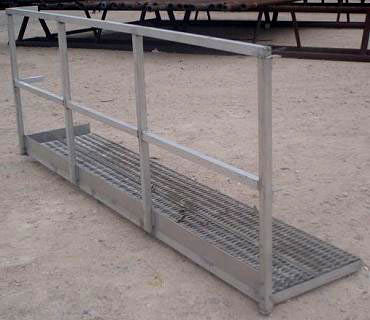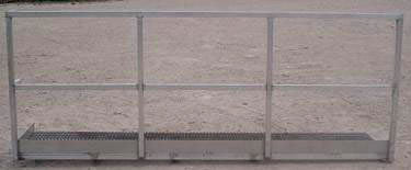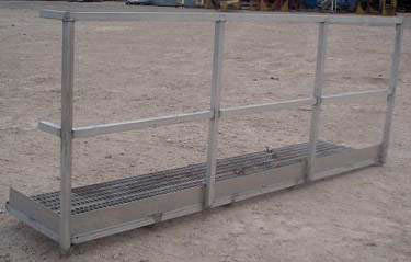 Stainless Steel Platform with Guard Rail. Walkway dimensions: 9 ft. 4 in. L x 2 ft. W. Guard rail: 3 ft. 6-1/4 in. H. Overall dimensions: 9 ft. 7-1/2 in. L x 2 ft. 2 in. W x 3 ft. 9 in. H.