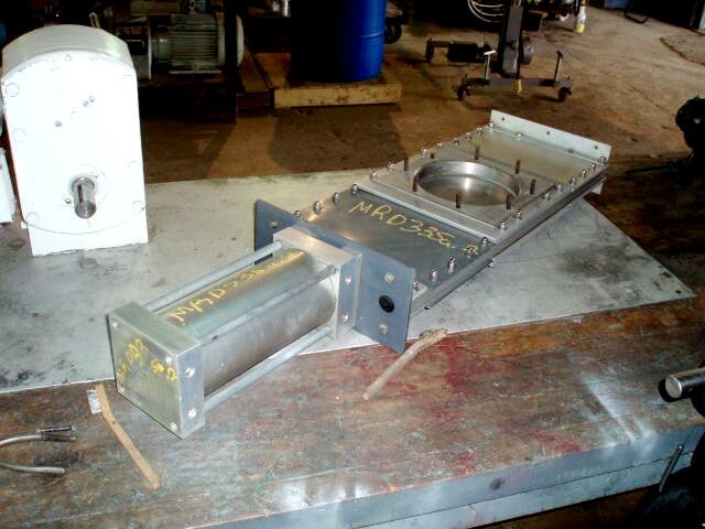 (3) Stainless Steel Pneumatic Slide Gate Valves. Model: 1600. Inlets/outlets: (1) 8 in. dia. port. Air inlets/outlets: (2) 1/2 in. dia. FNPT fittings. Overall dimensions: 3 ft. 7-1/2 in. L x 7-1/2 in. W x 1 ft. H.