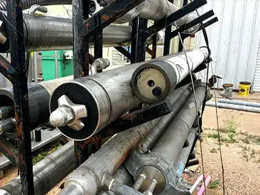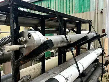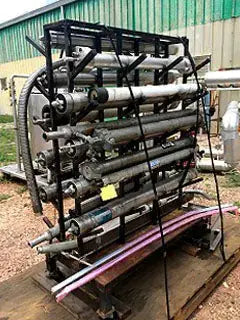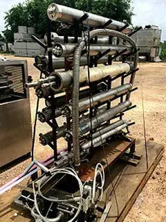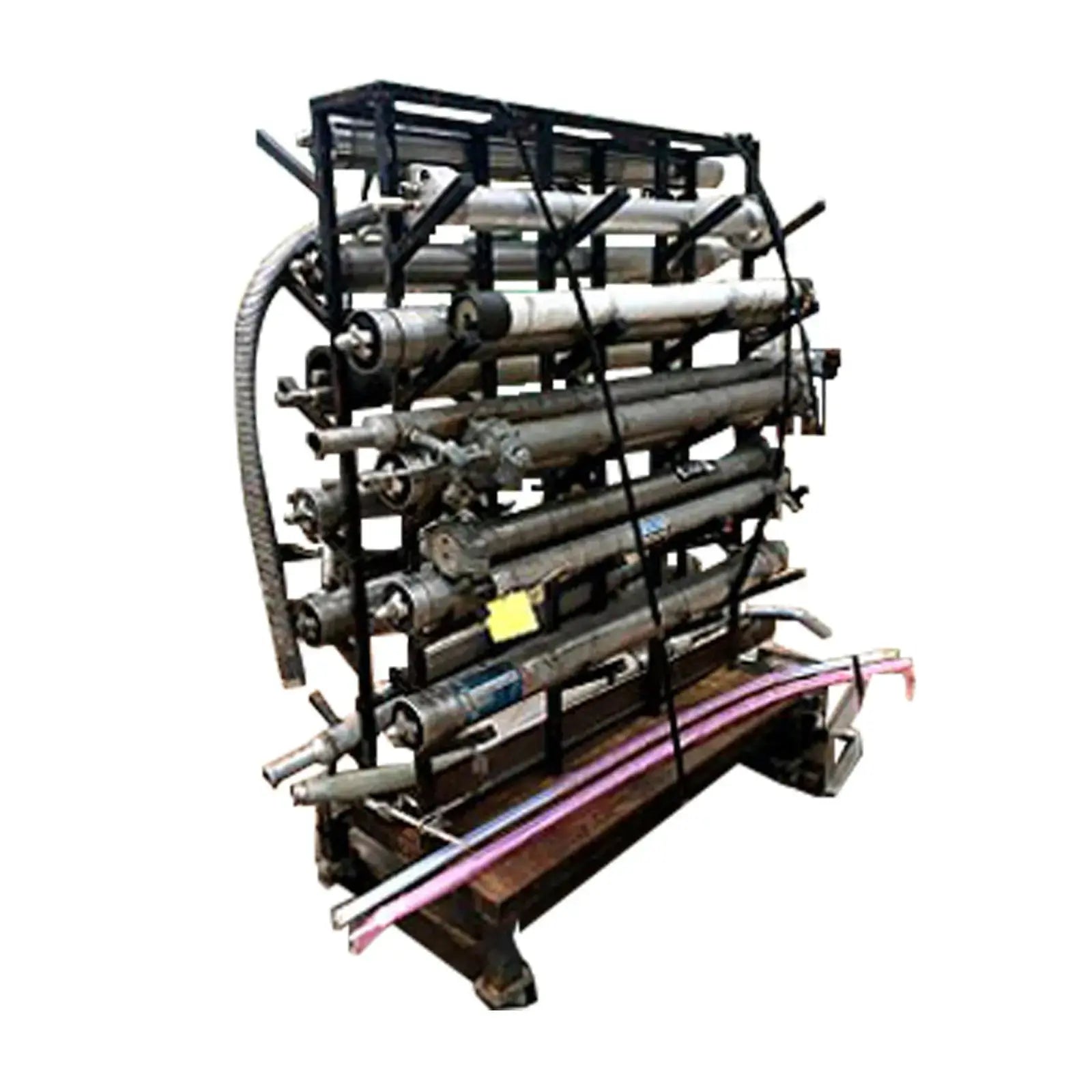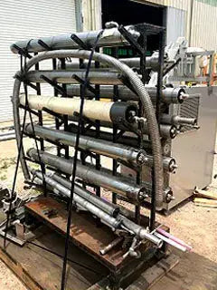Stainless Steel Filter Parts. Includes: Fedco model MD18CM / serial 201043, MPW, Membrane Products MPT-36, PCI, Membrane Selro, Osmonics model 192-43-SSNS-10 / serial 84-E202604, storage rack, etc. Overall dimensions: 5 x 3 x 5.5 high (feet).