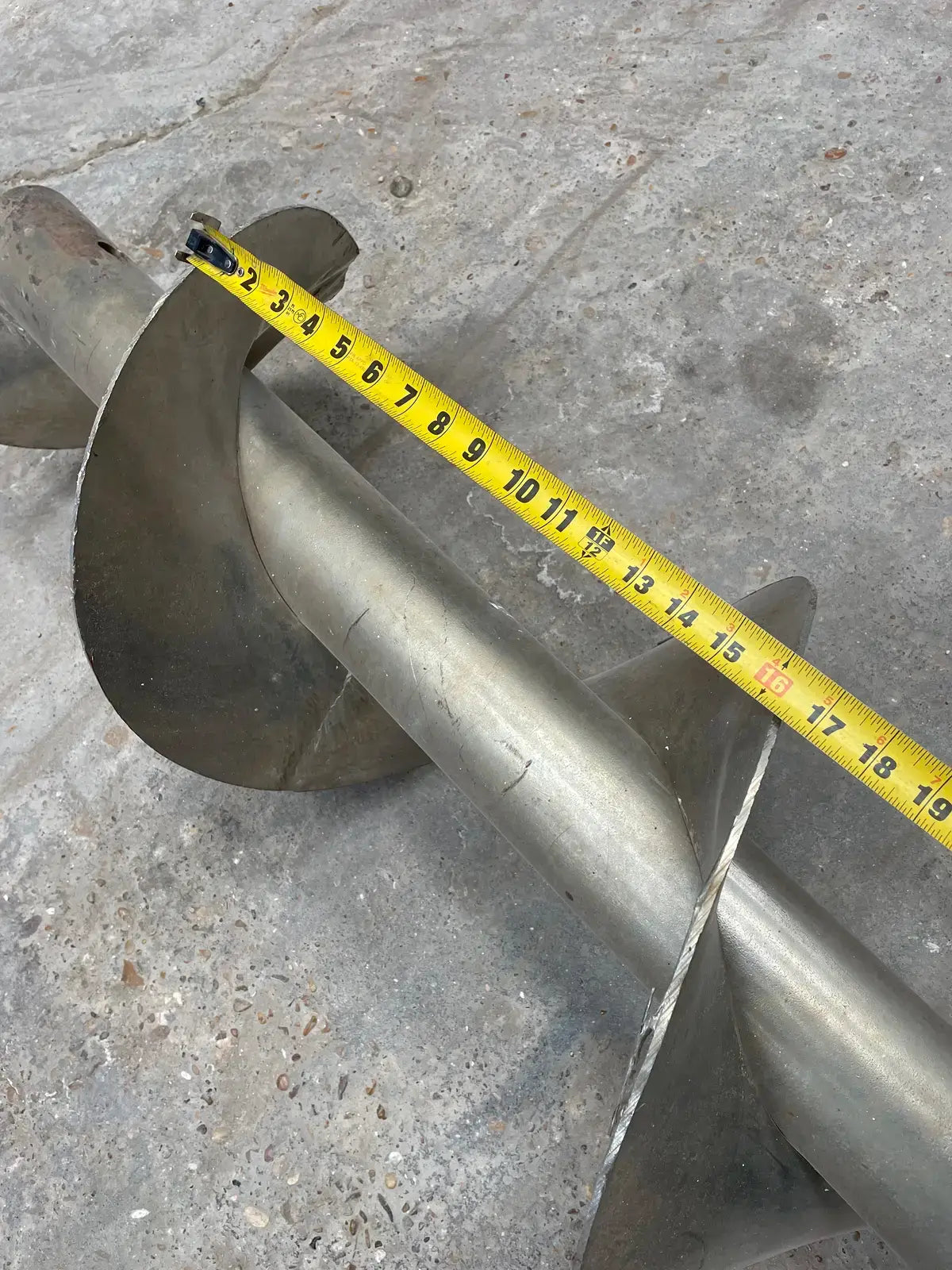 Stainless Steel Screw Auger. Screw Diameter: 16 in. Screw Pitch: 16 in. Screw Length: 146 in. Shaft Size: 3 in.