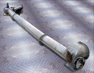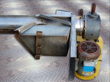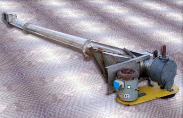 Stainless Steel Screw Auger Conveyor. Shaft diameter: 2 in. Auger dimensions: 9-1/2 in. dia. x 10 ft. L. Pitch: 10 in. Inlets: (1) 10 in. x 8 in. Outlets: (1) 10 in. dia. port. Overall dimensions: 10 ft. 5 in. L x 3 ft. 6 in. W x 2 ft. 5 in. H.