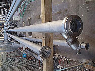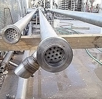 Stainless Steel Shell and Tube Heat Exchangers. (1) 3 in. dia. I-line shell tube with (19) 5/16 in. dia. multi-tubes, each 20 ft. long. ~31 sq. ft.