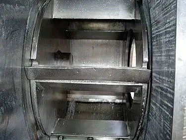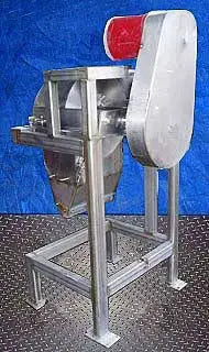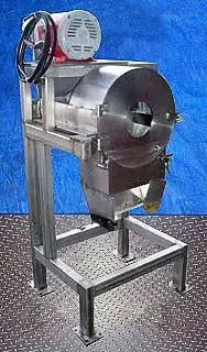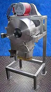 Stainless Steel Shredder. S/N: 24292. System consists of 18-1/2 in. dia. housing and 17-1/2 in. dia. rotating drum with (5) 9 in. L x 1 in. W blades. Baldor Industrial Motor, 10 hp, 1725 rpm, 690 rpm (final), 230/460 V, 28/14 amps, 60 Hz, 3 phase. Inlets: (1) 7 in. dia. feed port. Outlets: (1) 15 in. L x 9 in. W discharge chute. Overall dimensions: 32 in. L x 30-1/2 in. W x 65 in. H.