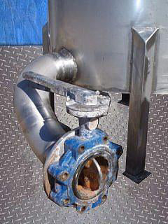 Stainless Steel Single Shell Balance Tank- 85 Gallon. Inside straight-wall dimensions: 29-1/2 in. dia. x 30 in. H. Liquid level float with cut-off valve. Inlets: (3) 2 in. dia. ports. Outlets: (1) 4 in. dia. flanged port with butterfly valve. Overall dimensions: 3 ft. 4 in. L x 2 ft. 8-1/2 in. W x 3 ft. 8 in. H.