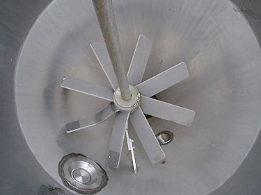Stainless Steel Single Shell Mix and Blend Tank Tank- 400 Gallon. Mixing propeller: 32 in. dia. Shaft length: 63 in. Taylor sample test valve. Motor, 5 hp, 1160 rpm, 68 rpm (final), 220/440 V, 13.6/6.8 amps, 60 Hz, 3 phase. Outlets: (1) 2-1/2 in. dia. port, (1) 3 in. dia. port. Overall dimensions: 88 in. L x 66 in. W x 9 ft 10 in. H.