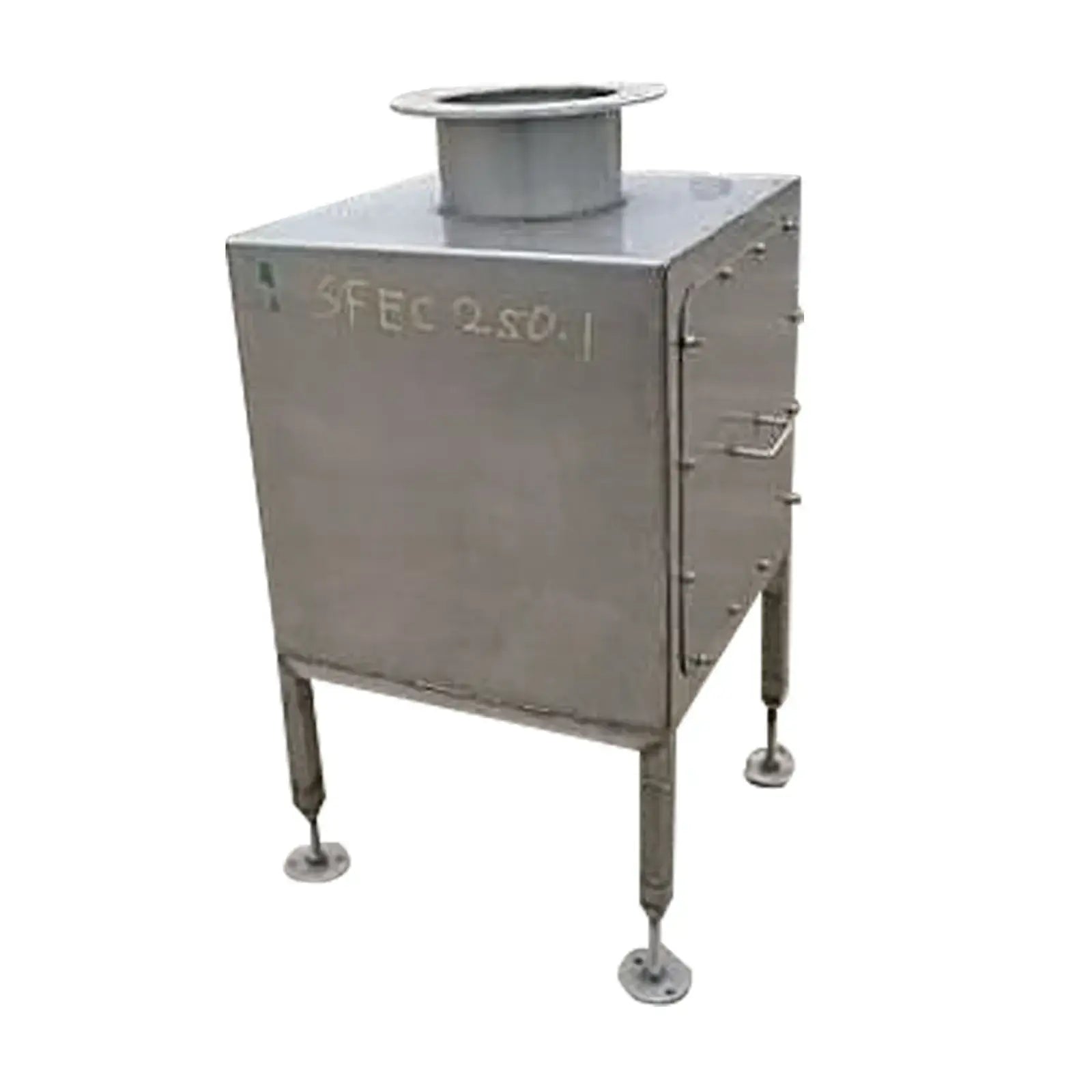 Stainless Steel Single Shell Tank-60 gallon. Inside tank dimensions: 2 ft. L x 2 ft. W x 2 ft. H. Inlets: (1) 10 in. dia. flanged port. Outlets: (1) 6-1/2 in. dia. flanged port, (1) 1/2 in. dia. FNPT. Overall dimensions: 2 ft. 8 in. L x 2 ft. W x 4 ft. H.