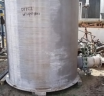 Stainless Steel Single Shell Vertical CIP Tank- 1500 Gallon. Side-mounted sight glass. (3) Level indicator probes. 18 in. dia. manway. Inlets: (1) 1 in. dia. 150lb ANSI flange, (1) 2 in. dia. 150lb ANSI flange, (1) 6 in. dia. ports, (3) 10 in. dia. ports. Outlets: (1) 8 in. dia. flanged port with butterfly valve, (1) 10 in. dia. flanged port. Originally installed at Tropicana. These CIP tanks contained caustic solutions and were removed when that division was closed. Overall dimensions: 6 ft. 6 in. L x 6 ft. 2 in. W x 13 ft. 4 in. H.