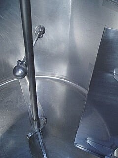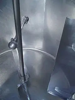 Stainless Steel Single Shell Vertical Mix Tank- 1000 Gallon. Key features include: 20 in. dia. manway, dual sprayballs for CIP cleaning, side-mounted baffle, and a 70 in. dia. bottom-sweep agitator for consistent mixing. Master Gearmotor, 3 hp, 1725 rpm, 50 rpm (final), 208-220/440 V, 8.0/4.0 amps, 60 Hz, 3 phase. Inlets: (1) 1-1/2 in. dia. I-line fitting (male), (1) 2 in. dia. threaded fitting, (3) 2 in. dia. I-line fittings (male). Outlets: (1) 2 in. dia. I-line fitting (male). Overall dimensions: 72 in. dia. x 9 ft. 6 in. H.
