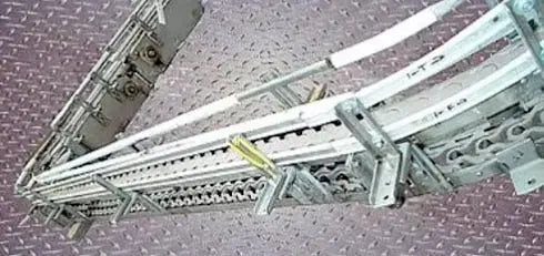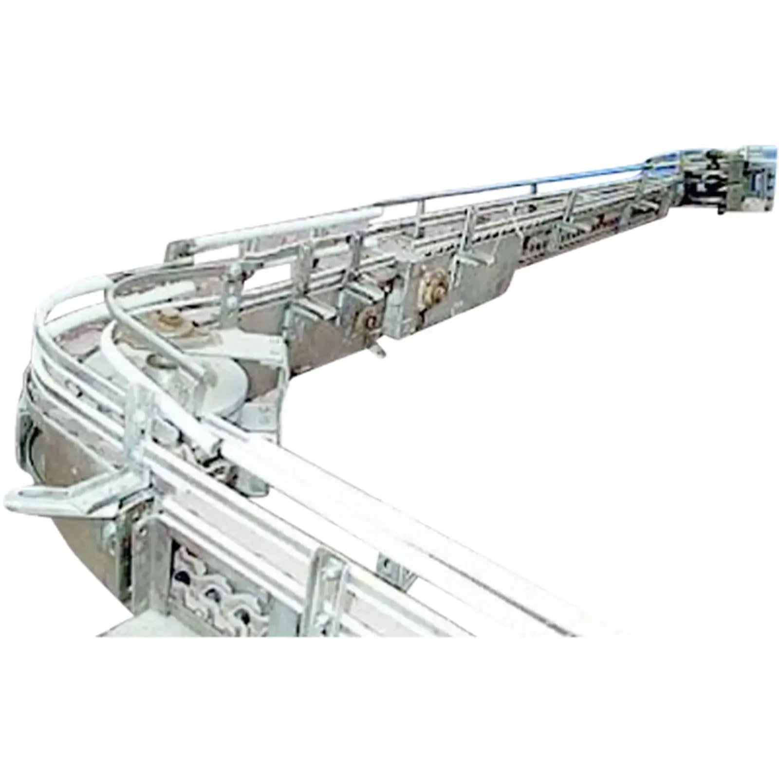 Stainless Steel Table Top Conveyor. Unit consists of (6) removable pieces with dual adjustable guardrails. Belt type: REX 1701T. Effective conveyor belt length: 2-1/2 in. W x 258 in. L. Overall dimensions: (Piece #1) 82 in. L x 12 in. W x 13 in. H, (Piece # 2) 63 in. L x 12 in. W x 13 in. H, (Piece # 3) 71 in. L x 12 in. W x 13 in. H, (Piece #4, 45° angle) 17 in L. x 12 in. W x 13 in. H, (Piece #5, 90° angle) 49 in. L x 22 in. W x 14 in. H, (Piece #6, 90° angle) 20-1/2 in. L x 27-1/2 in. W x 14 in. H.