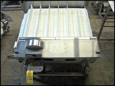 (2) Stainless Steel Tail Cutters. 31-1/2 in. flighted belt w/ 4 in. W secondary belt, photo eye activation