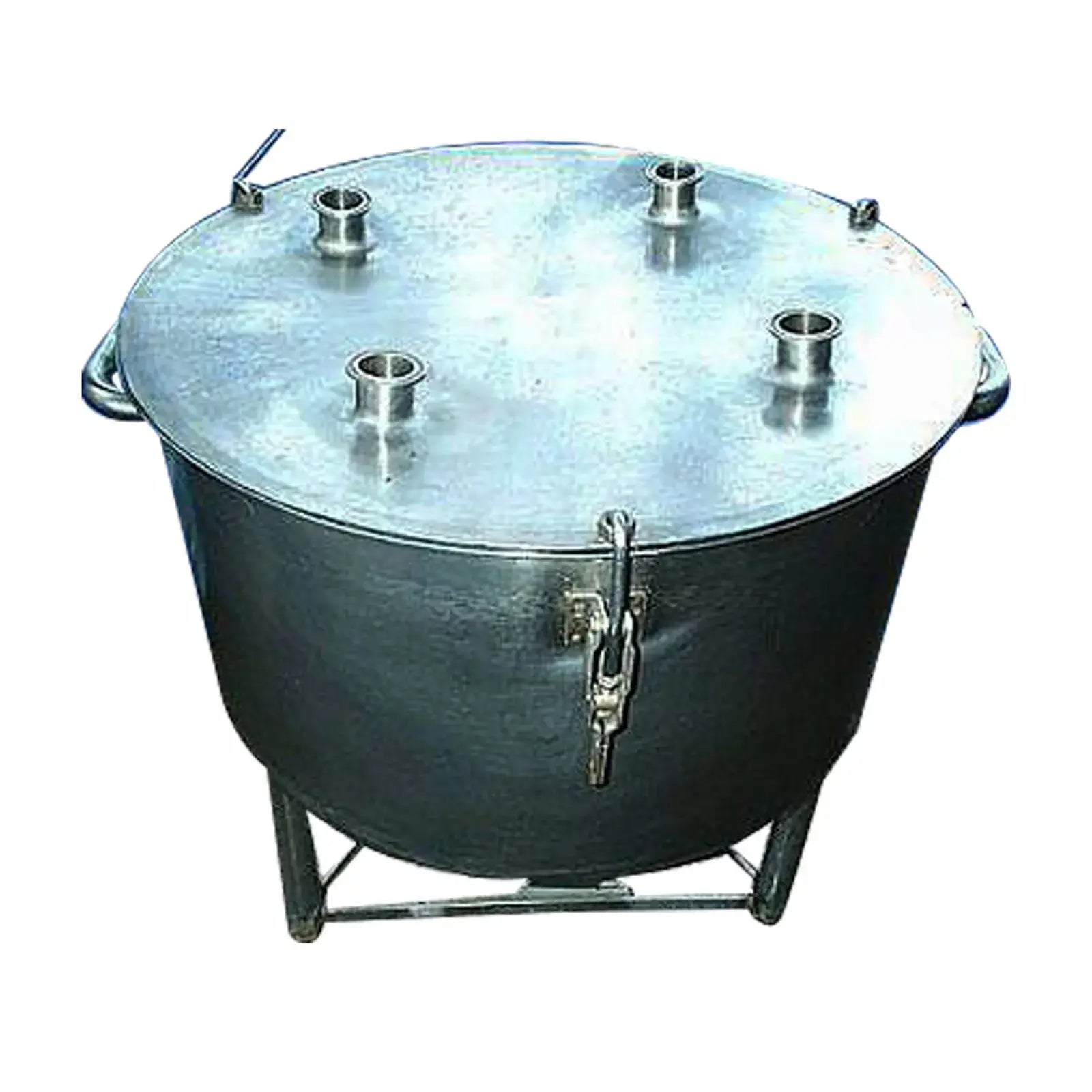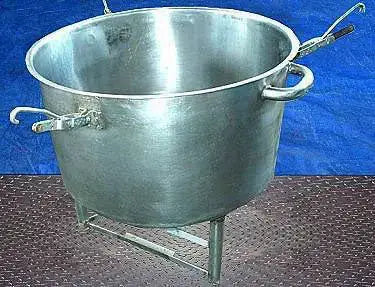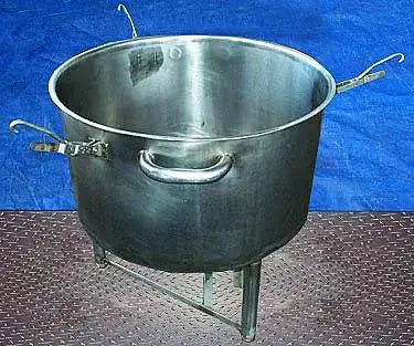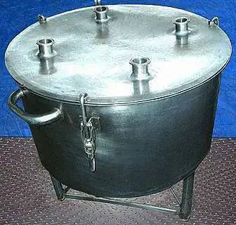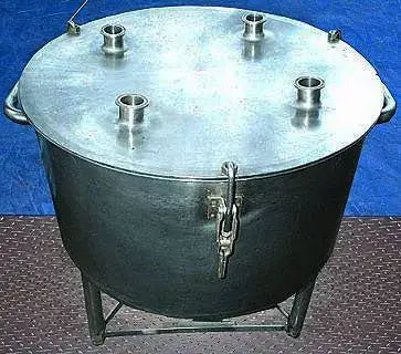 Stainless Steel Tank- 25 Gallon. (3) Lid retaining clamps. (2) Handles. Inlets: (4) 1-1/2 in. 'S' line. Outlets: (4) 1-1/2 in. 'S' line. Overall dimensions: 30 in. diameter x 26 in. H.