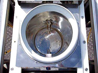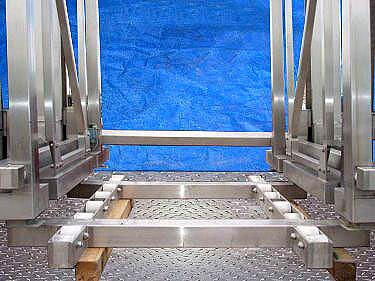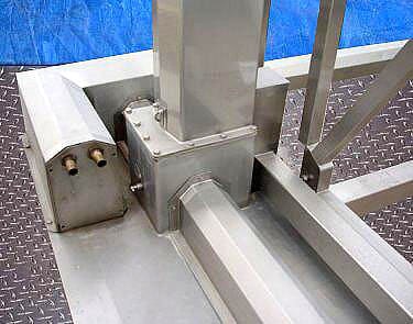 Stainless Steel Tote Unloader with Elevator. Used in applications where product is in granule or powder form. Tote must have bottom-center discharge. Cycle performed: elevate, position, weigh, unload. Elevates tote a distance of 62 in. from floor level. (4) Fairbanks Sensortronics Load Scales, Model: 65082-1.5K-6002, maximum capacity: 1,500 lbs, Vmin: 0.06, DL min: 30. (2) Baronshire Engineering Pneumatic Actuators, Model: 025 ST, Job No's: 17264 SL and 17111 SL, F diameter: 70 mm, OP Mode: DA, air pressure: 80 psi, one actuator for tote discharge gate, one actuator for butterfly valve discharge. (2) Matara UK Ltd Rodless Cylinders, Typ-Hub: PL00, S/N's: 1949 and 4221, size: 40x1720, diameter: 40 mm. Pneumatic Vibrator. Tri-Clover Bypass Valve. Springride DF 10x2 Airbags. Inlets: (1) 3/4 in. dia. barb fitting (air supply), (1) 2 in. dia. S-line fitting, (1) 10 in. dia. infeed. Outlets: (1) 3/4 in. dia. barb fitting (air supply), (1) 10 in. dia. S-line fitting. Overall dimensions (elevator): 94-1/2 in. L x 66 in. W x 87-1/2 in. H. Overall dimensions (scale): 91 in. L x 73 in. W x 74 in. H.(H17).