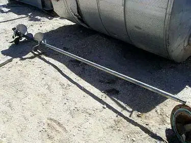 Stainless Steel Vertical Tank Agitator. Shaft dimensions: 1-1/2 in. dia. x 9 ft. H. Number of impellers: 2. Impeller diameter: 1 ft. 2 in. Last used in a 2,000 gallon tank. Overall dimensions: 1 ft. 2 in. L x 1 ft. 2 in. W x 9 ft. H.