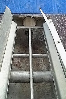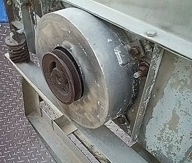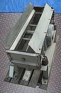 Stainless Steel Vibrating Deck Screen. Inlet: 36 1/2 in L x 12 in. W port on top. Outlet: 4 in. port on bottom and 6 in. port on side. (4) springs. Pulley on side with drive on both sides. Overall dim: 52 in. L x 19 in. W x 30 in. H.