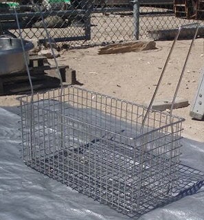 Stainless Steel Wash Basket. Inside dimensions: 21 in. L x 10 in. W x 10 in. H. Side handles. Square size: 3/4 in. L x 3/4 in. W. Overall dimensions: 29 in. L x 11 in. W x 24 in. H.