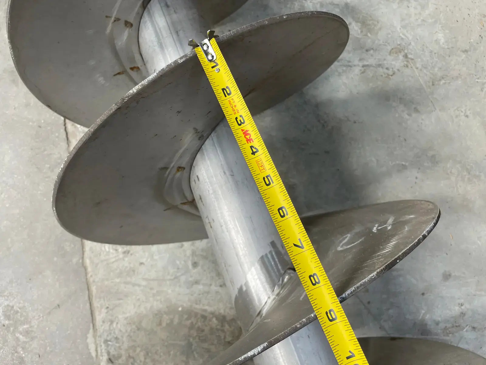 Standard Pitch Stainless Steel Screw. Pitch: 8 in. Diameter: 16 in. Screw Auger Length: 112 in. Material: Stainless Steel.