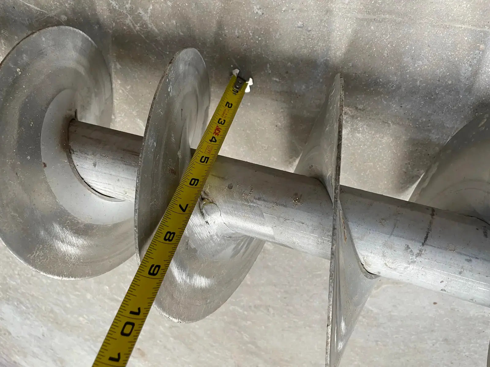 Standard Pitch Stainless Steel Screw Conveyor. Pitch: 4.5 in. Diameter: 8.5 in. Screw Auger Length: 120 in. Material: Stainless Steel.