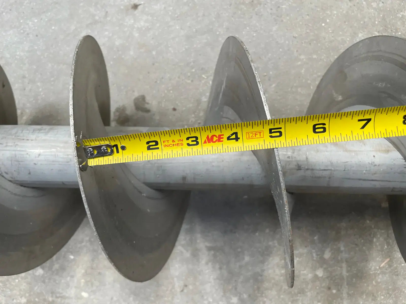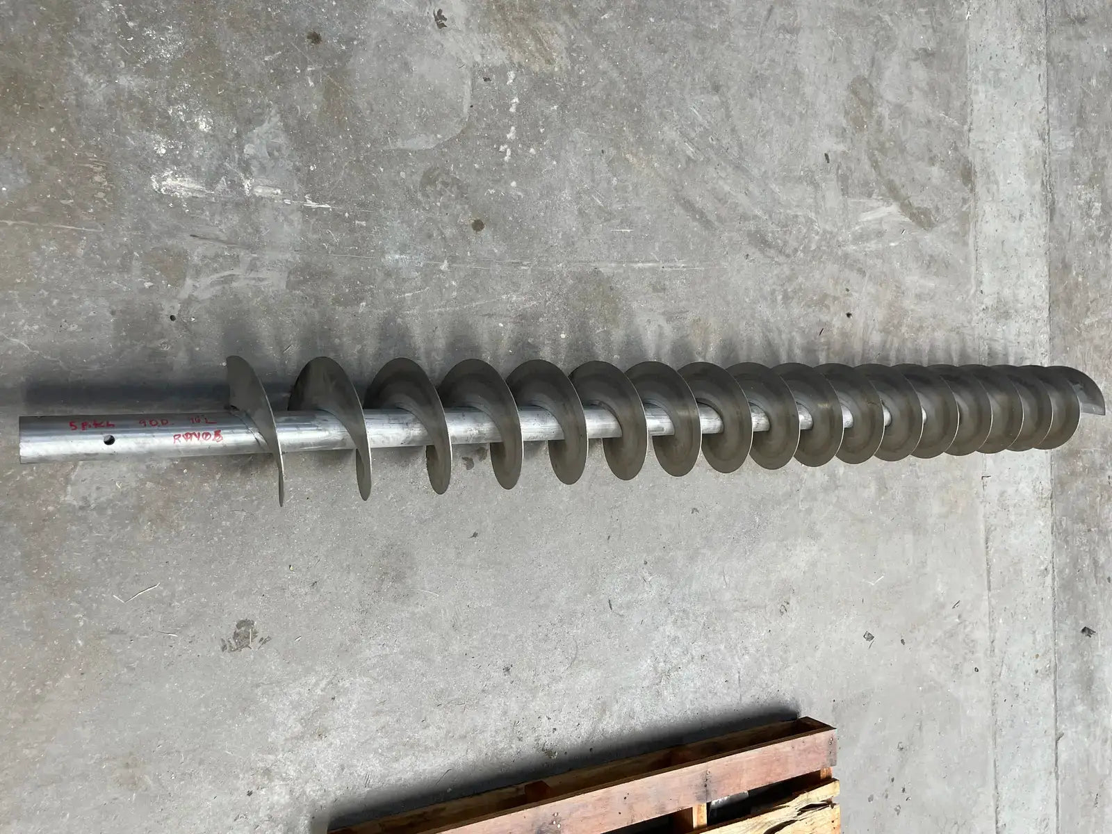 Standard Pitch Stainless Steel Screw Conveyor. Pitch: 5 in. Diameter: 9 in. Screw Auger Length: 96 in. Material: Stainless Steel.