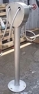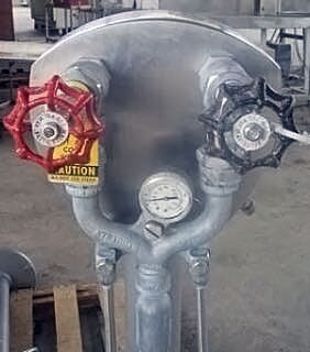 (8) Strahman Valves Pedestal Series Mixing Unit-Hose Stations. Maximum working pressure: 150 psi. Model: M-750TM. Maximum operating temperature: 200ºF. The unit is constructed entirely from stainless steel and provides wash water from blended hot and cold water. The unit comes with an accurate dial type gauge that displays in both Celsius and Fahrenheit, the wash water’s exact temperature. These units have applications in varieties of manufacturing plants and processing industries, including food, beverage, pharmaceutical and others where fast and effective cleanup is necessary. 1 ft. 2 in. L x 1 ft. W x 4 ft. 3 in. H. (ACN46a)