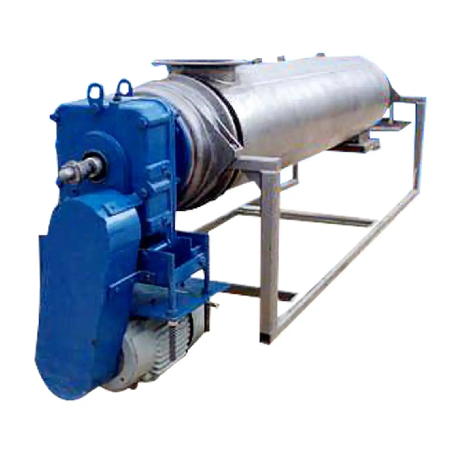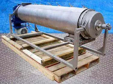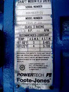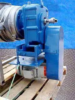 Jacketed Paddle Blender. Inside dimensions: 1 ft. 3-1/2 in. dia. x 6 ft. 10 in. L. Paddle size: 2 in. L x 2 in. W. Side scraper size: (3) 6 ft. 8 in. L x 2-3/4 in. W. Access doors: (3) 1 ft. 7-1/2 in. L x 11 in. W. Foote-Jones Powertech Gear Drive. The Turbulizer is a continuous high shear paddle mixer. Paddle elements allow adjustment of angle and housing clearance. This feature of paddle mixers, in combination with high paddle tip speeds provides flexibility for control of residence time and the mix intensity or shear imparted on materials. Although residence time can be controlled it remains very short, in the range of 2-30 seconds. The thin working layer of material in the paddle mixers promotes excellent indirect heat transfer efficiency in jacketed models and a self-cleaning effect that eliminates lost product on start up and shut down. A list of successful Turbulizer processes includes dry powder mixing, hydrating hard to wet powders, slurry mixing, coating, sterilization, crystallization, agglomerating / granulating, homogenizing, de-lumping and finishing. Overall dimensions: 10 ft. 10-1/2 in. L x 2 ft. 8 in. W x 3 ft. H.