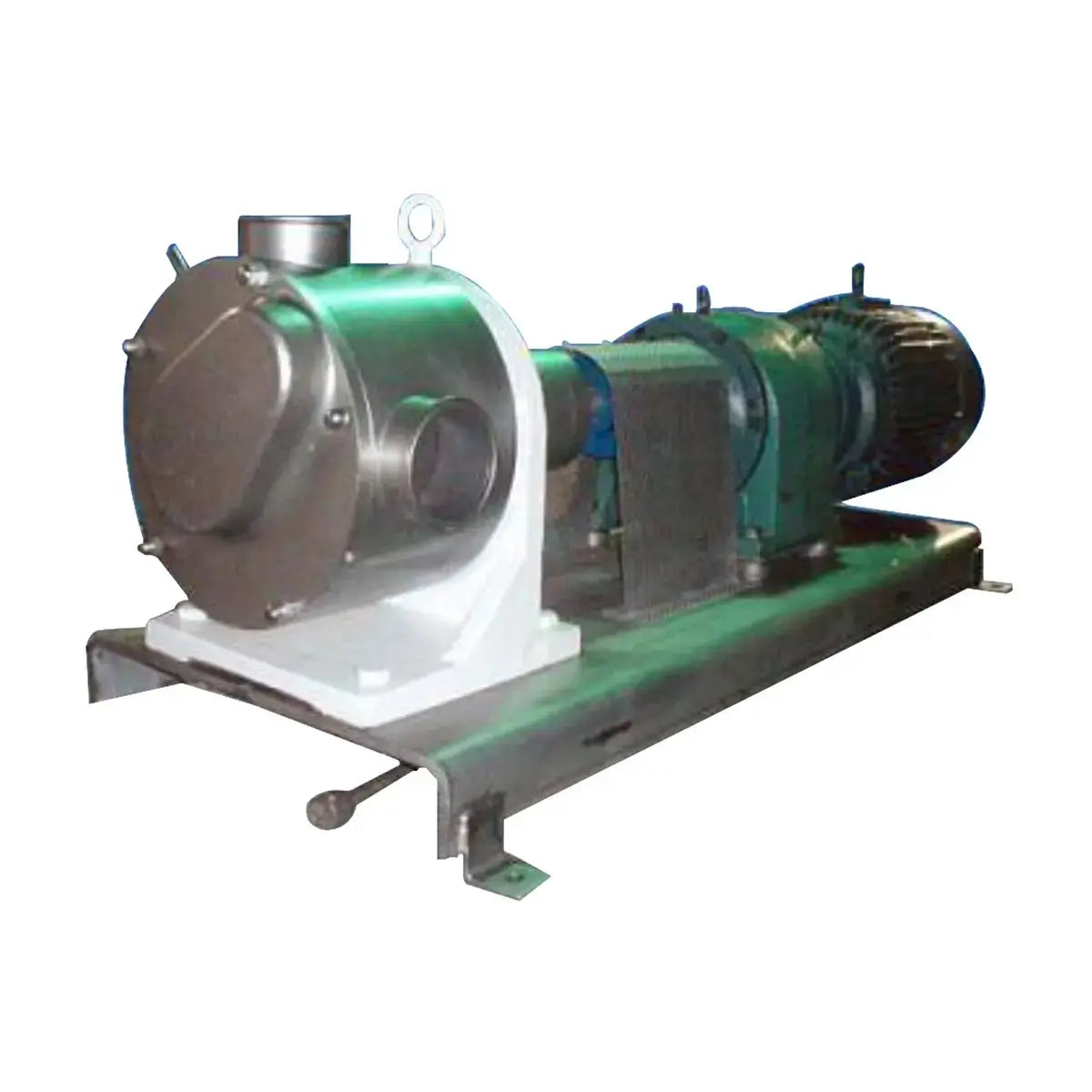 Sundyne Maso Sine MR Series Positive Displacement Pump. Model: MR150-NNTC. S/N: 1000134-01. Nominal Capacity: 282 gpm. Maximum speed: 600 rpm @ 150 psi. Reliance Electric Motor, 20 hp, 1760, 230/460 V, 47.0/23.5 amps, 60 Hz, 3 phase. Speed reducer. ratio: 4.1, 427 rpm out (final), torque: 5740 lb-in. Inlets/outlets: (2) 4 in. dia. S-line fittings. Design advantages include: powerful suction for viscous products, low pulsation for smooth, consistent flow, and low shear for fragile and shear-sensitive products. Typical applications include: cheese, curd & whey, cottage cheese, butter, yogurt, fruit concentrates, syrups and beers. Overall dimensions: 5 ft. 5 in. L x 2 ft. W x 1 ft. 11 in. H.(ACN140).