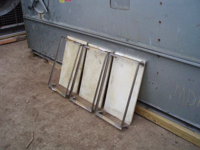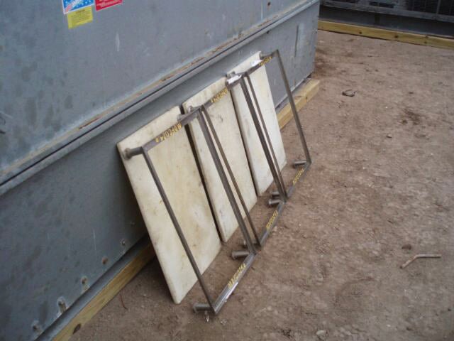 3 Table Top Cutting Boards with Stainless Steel Frame. Overall Dimensions: 2 ft. 2 in. L x 1 ft. 3 in. W x 3½ in. H.