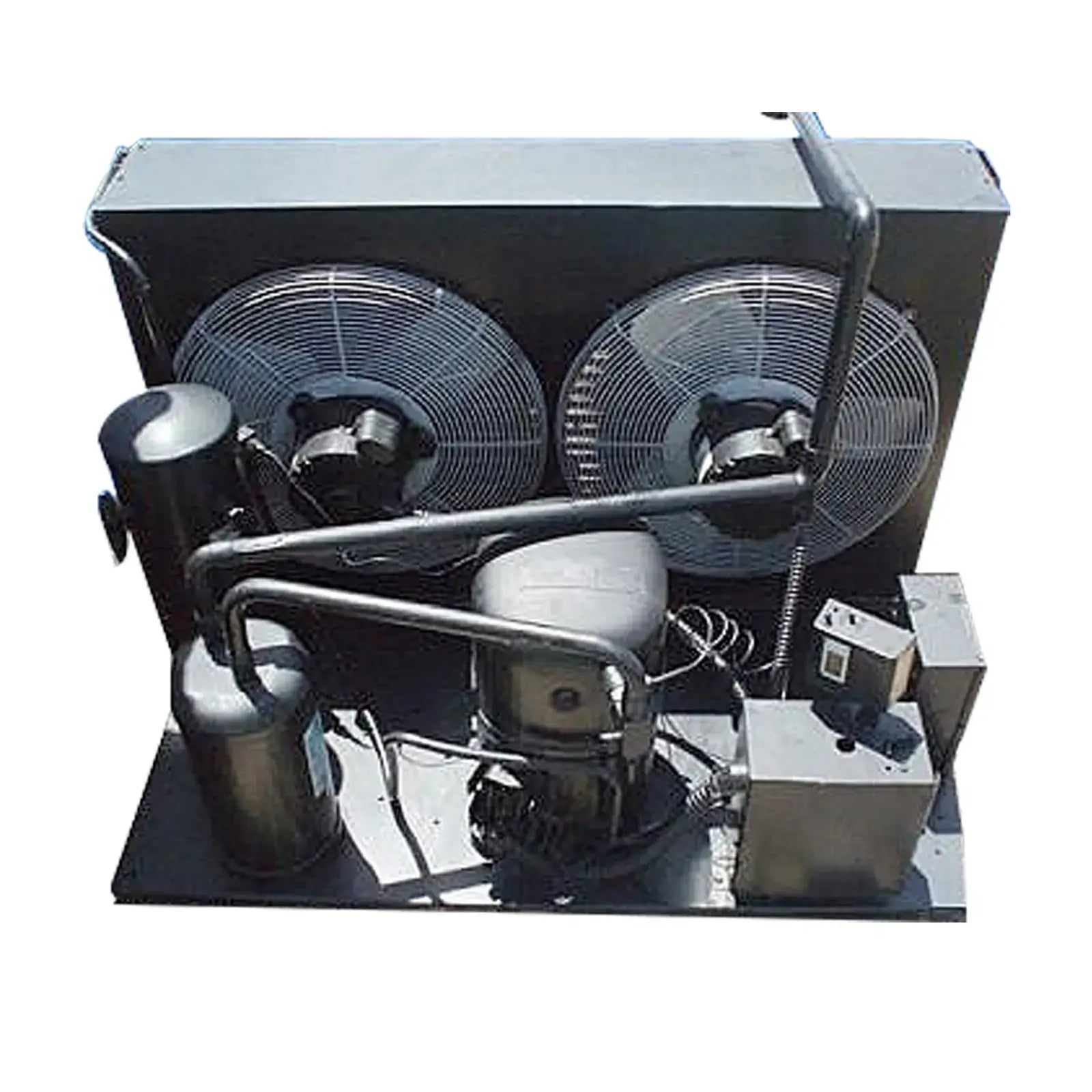 Tecumseh Condensing Unit-3 Ton. Model: AG4534A. S/N GM2189A 016632. BTU: 33,700. Power supply: 230/208-220/200 V, 90.0 amps, 60/50 Hz, single phase. Evaporator dimensions: 42 in. W x 25 in. H. (2) Emerson Fan Motors, 1/6 hp, 1350/1550 rpm, 1.35 amps, 50/60 Hz, single phase. Refrigerant receiver, capacity: 1.5 gal, Model: 99600, refrigerants: R-12, R-22, R-502, working pressure: 450 psig, temperature: 620 °F. Refrigerant accumulator. Inlets/outlets: (1) 1 in. dia. copper tube. Current Model: AVA5542EXN (compressor), AVA4540 (condenser). Overall dimensions: 45 in. L x 39 in. W x 30-1/2 in. H. (ACN13-89).