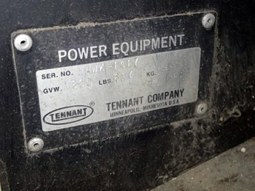 Tennant Co. diesel powered floor sweeper. Model: Litter Hawk. Serial: HAWK-1417. Hours: 390. Weight: 1375 lbs.