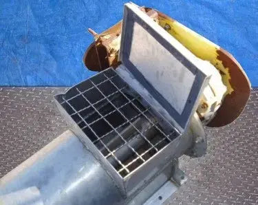 Thomas Conveyor Company Vertical Screw Auger Conveyor. Stainless steel construction. Screw auger diameter: 12 in. Auger housing diameter: 12-1/2 in. Screw auger length: 18 ft. 9 in. Capacity (35lbs/cu.ft. of ice @ 312.5 rpm): 7,650 lbs/min. Auger is equipped with (2) 18 in. L x 1-1/2 in. W product paddles and a 13 in. L x 9 in. W access door. Dodge Motor Drive, 5.60 ratio. Inlets: (1) 10-1/2 in. dia. infeed. Outlets: (1) 17 in. L x 13 ft. W discharge chute. Overall dimensions: 25 ft. L x 31 in. W x 29 in. H.