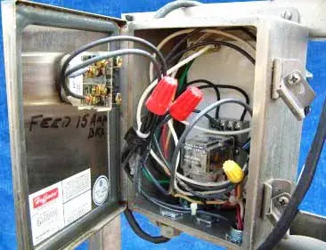 Timing Conveyor. Conveyor is disassembled in 2 parts. Electric Box: Underwriters laboratories (Hoffman), Cat No. A-8064CHNFSS. Enclosure Type: 4.4X.12. (2) KB Electronics DC Motor Speed Control. Model KBPC-240 D. Input: 120/240 V, 15 amps, 50/60 Hz. Output: 10.2 amps (DC). (2) Dayton DC Gear Motor: .1 hp, CV 20, 90 V, 0.6 amps, 109 rpm, 27 (lb-in) torque. Ratio: 16.5. (3) Legs: 22 in. H (1st part). (2) Legs: 18-½ in. H (2nd part). Dimensions: (1st part): 33-½ in. L x 26 in. W x 41 in. H. Dimensions for 2nd part: 35-½ in. L x 9-½ in. W x 29 in. H.