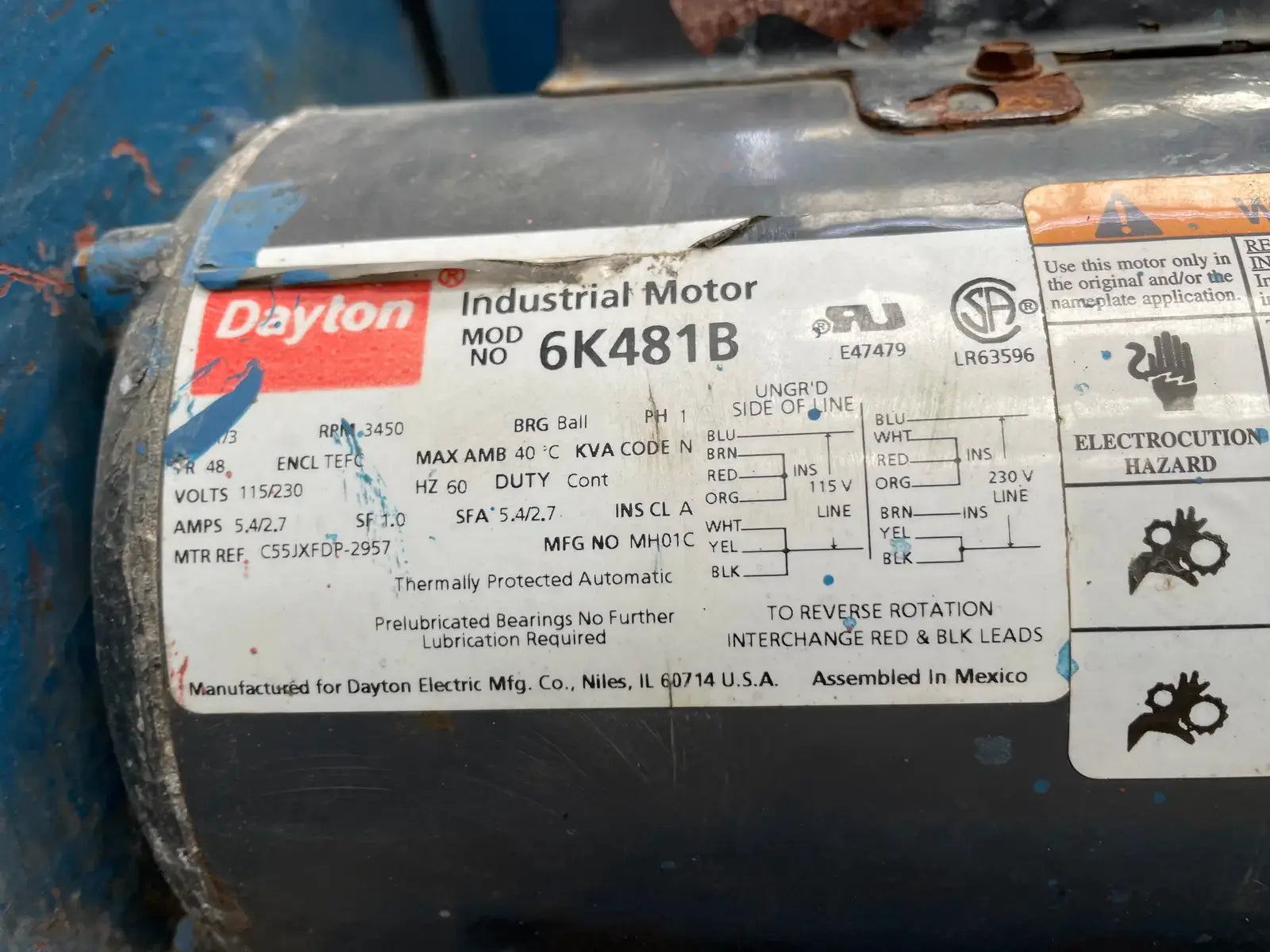 - If Multiple Motors, Motor Descriptions vs specs: Dayton Fan Blower: RPM: 3450, Ph: 1, Volts: 115/230, Hz: 60. Teco Hopper Motor: HP: 1/3, Hz: 60, Volts: 115/230, RPM: 1770, Amps: 8.5/4.25.