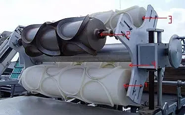 Tortilla Cutter Line. SM-HyPEX, Model RMH40L. S/N F049907. 0.5 hp, output rpm 87.5. Overall Dimensions 164 in. L x 57 in. W x 82 in. H. Include four rolls on it and you can only lock into place and use one at a time. Each one can do something different. Roll 1: 7-1/2 in. dia. 12 tpr, Roll 2: 6-1/2 in. dia. 11 tpr, Roll 3: 5 in. dia. 15 tpr, Roll 4: 6 in. dia. 15 tpr (tortilla per revolution).
