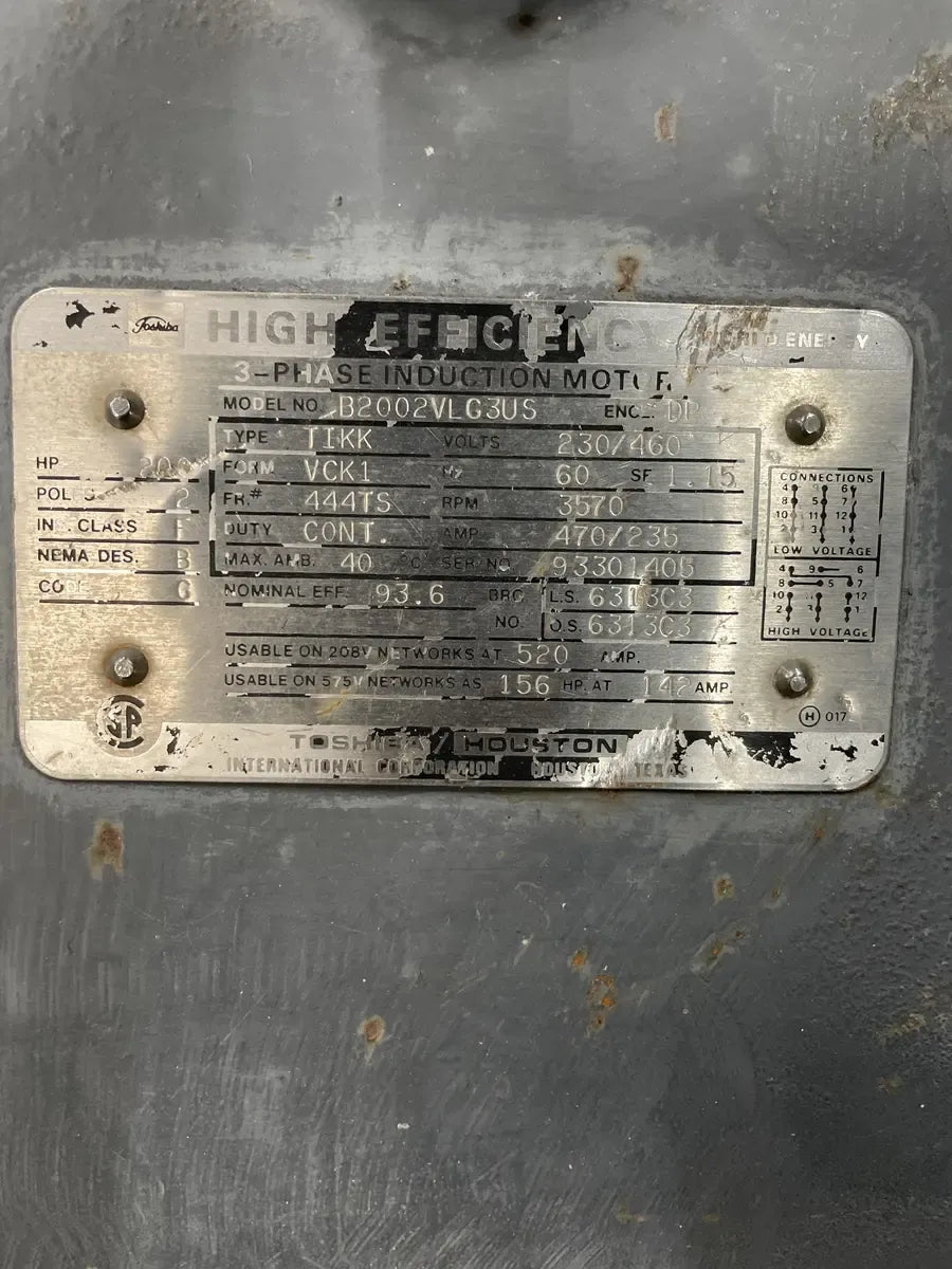 Toshiba B2002VLG3US Motor (200 HP, 3570 RPM, 230/460 V)