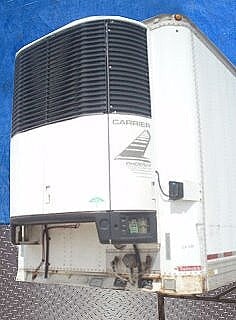 1993 Trailmobile Refrigerated Trailer. Model: 01AN-1UAL. VIN and S/N: 1PT01ANH3R9004750. Inside dimensions: 46 ft. 9 in. L x 96 in. W x 98 in. H. GVWR: 65,000 lbs. GAWR (2 axles): 20,000 lbs. each with 11R24.5G tires, 8.25x24.5 rims, and inflated @ 95 psi. Coupler height: 49.5 in. Floor code: L. Door code: F. Side lining code: F. Trailmobile thermal performance - Heat transmission rate: 103 Btu/hr-°F. Floor airflow area: 46.3 sq. in. Carrier Transicold Phoenix Advantage Refrigeration Unit, Model: NDA749N0-WM-0, S/N: DAA90188514, Refrigerant: R-22. CFM:41 Carlyle 6-Cylinder Reciprocating Compressor, Model: 05GG041150, S/N: 2093J02322. 41 CFM Cooling (100 °F ambient): 54,000 Btuh @ 35 °F, 35,000 Btuh @ 0 °F, 20,000 Btuh @ -20 °F. Heating (0 °F ambient): 46,000 Btuh @ 65 °F, 46,000 Btuh @ 35 °F. Air discharge (no load/system load): 3,350/2,940 scfm. Aluminum floor. Outlets: (1) 48 in. W x 4 in. H air discharge, (1) 45 in. W x 89 in. H, (1) 99 in. W x 103 in. H rear door access. Diesel motor is not included, but can be added. Overall dimensions: 50 ft. L x 102 in. W x 13 ft. 2 in. L. (ACN550-600-94).