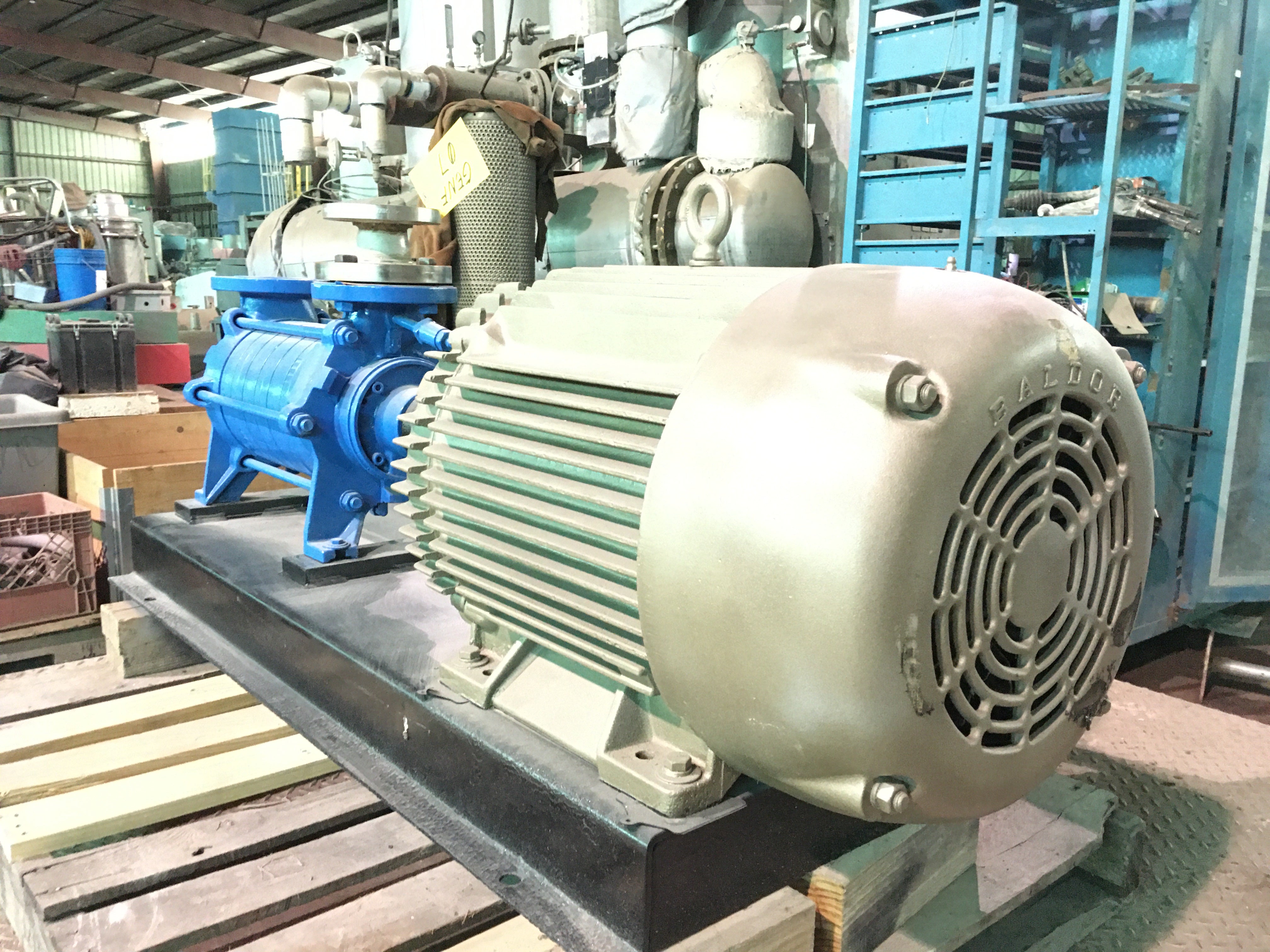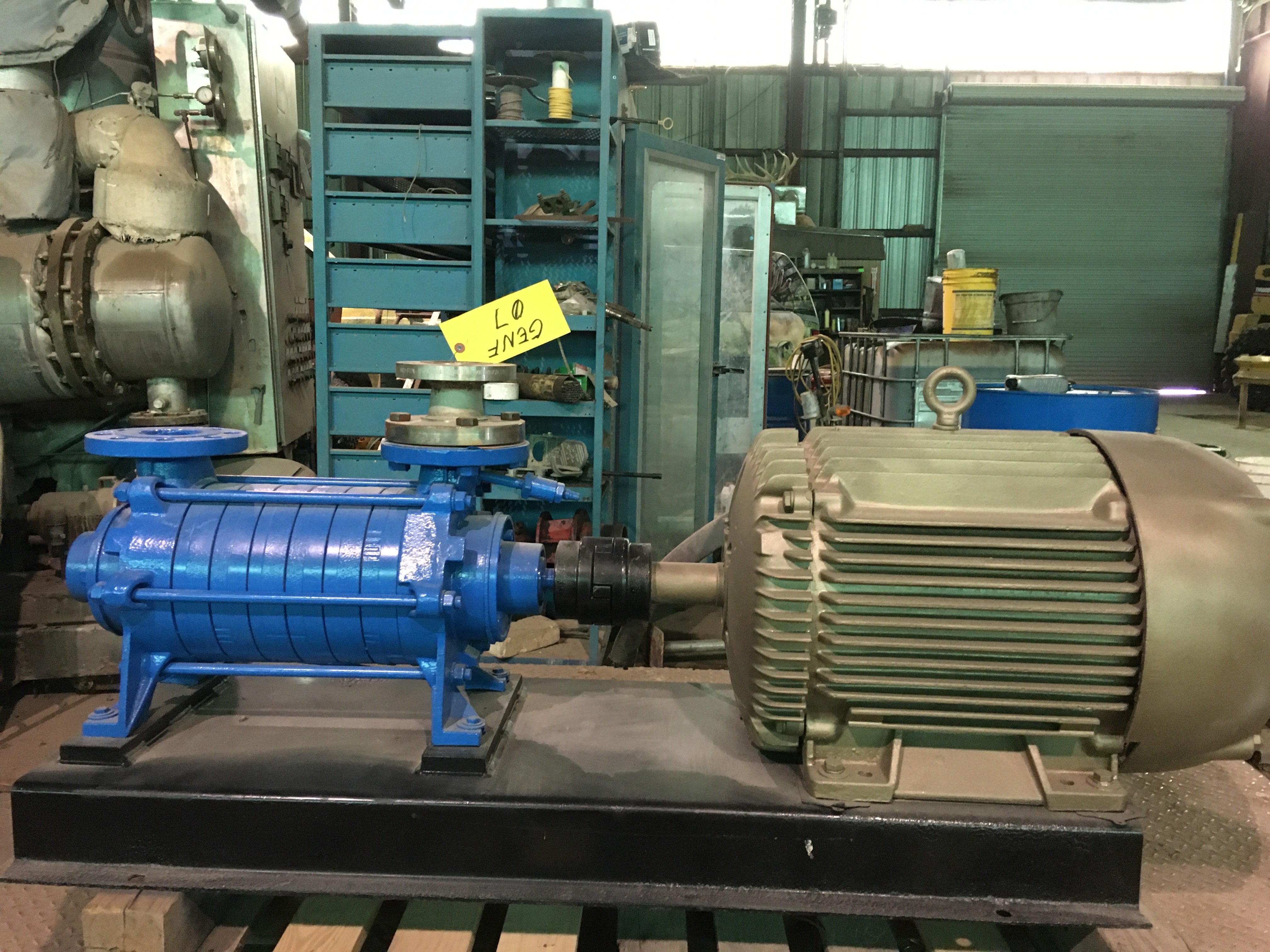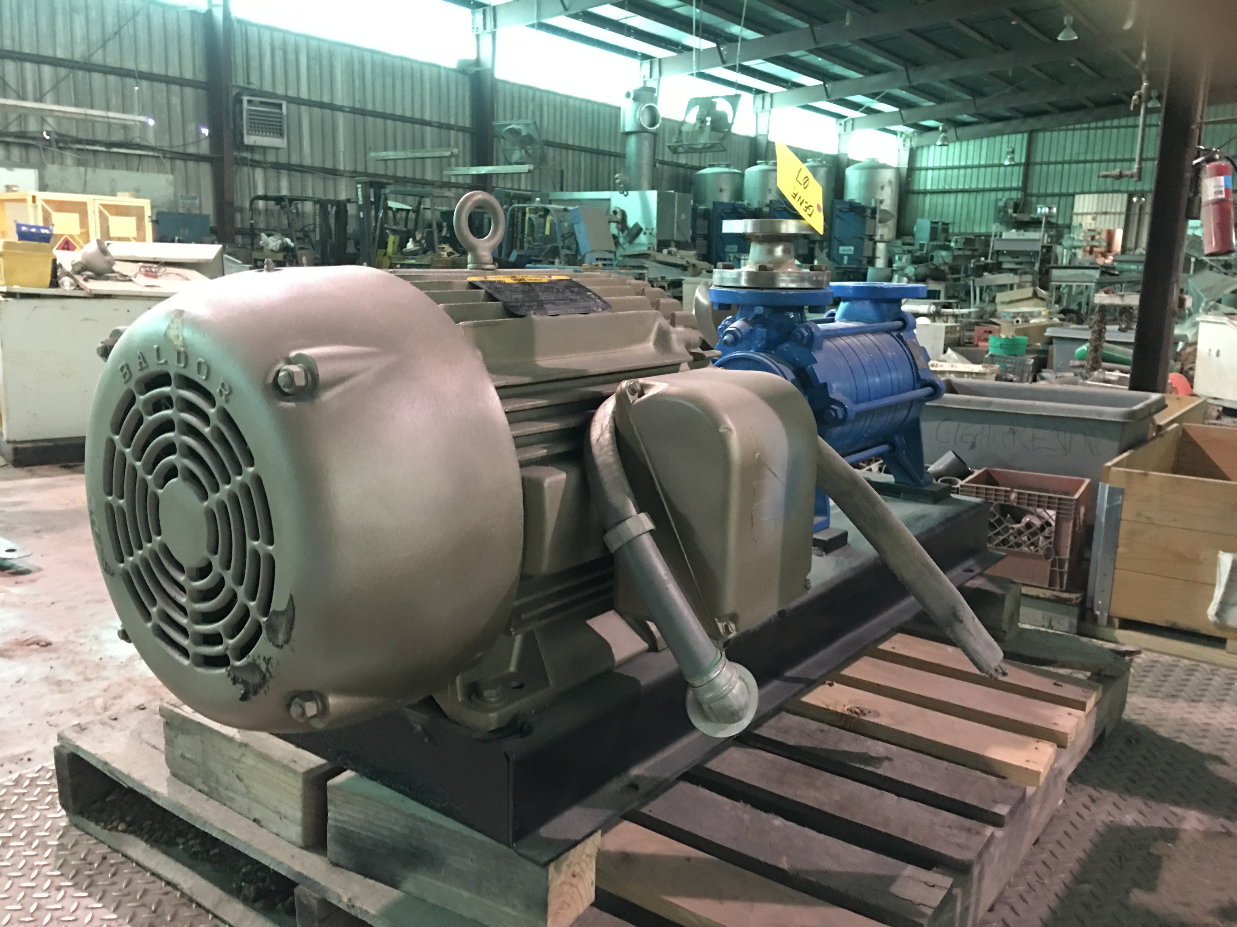 Travaini Pump: Pump Type: TBH 653/2-C/6E, Serial No: CA11-3181. Head Capacity 50 to 1120 ft. Features Low Vibration and Noise level for Maximum Reliability.. Pump Size 65. Vertical PN40 Flanges. Baldor Motor: Cat No: EM4110T, Spec: 12H013Y276, Cust: P/N, Encl: TEFC, Cc: 010A, Frame: 324T, Ser No: C110120637, HP: 40, RPM: 1775, Class F, HZ: 60, PH:3, Des: B, Volts: 230/460, Code: H, Amps: 96/48, Usable at 208 102A, Rating: 40C AMB-CONT, Nema Nom Eff: 94.1.