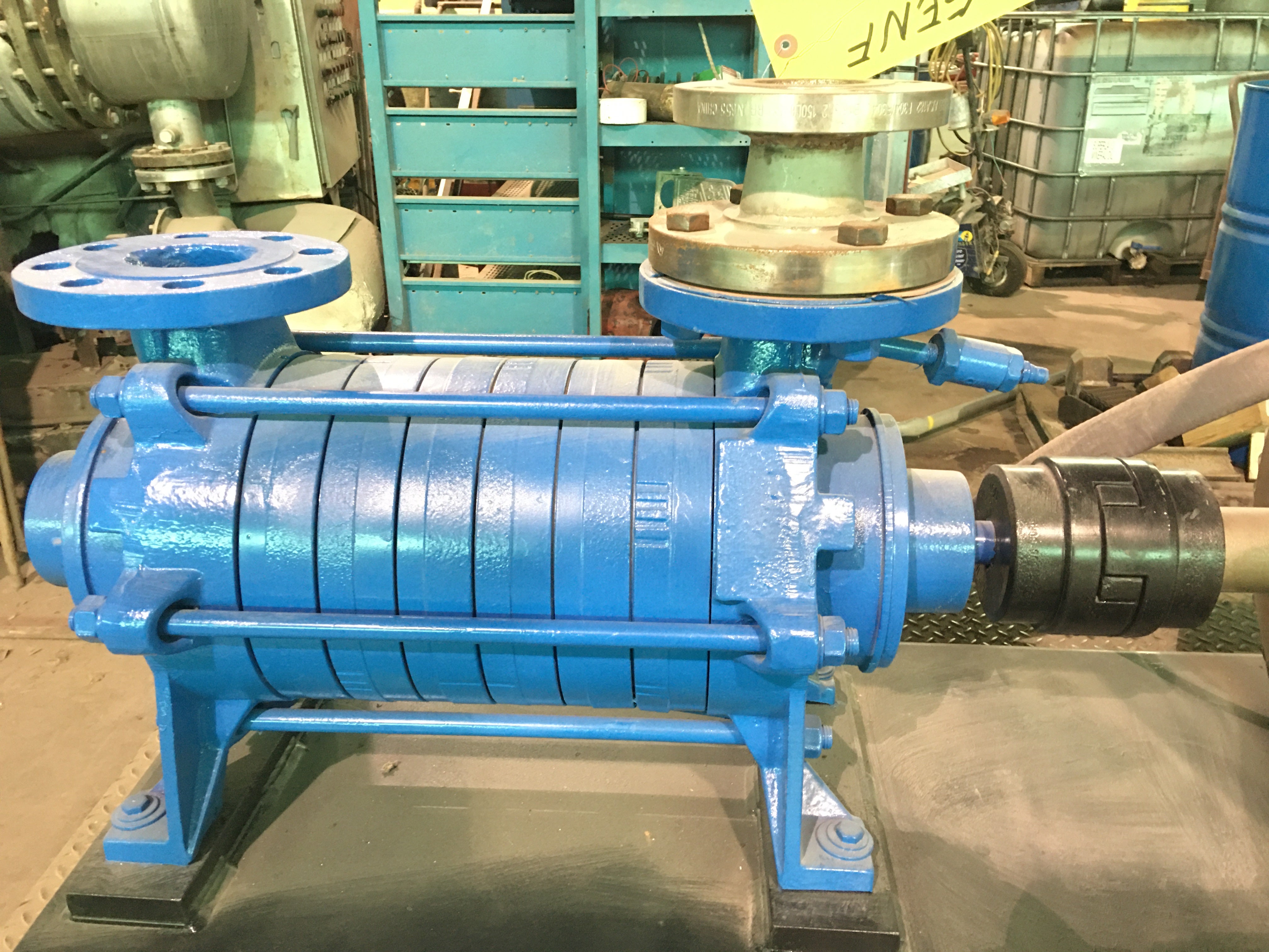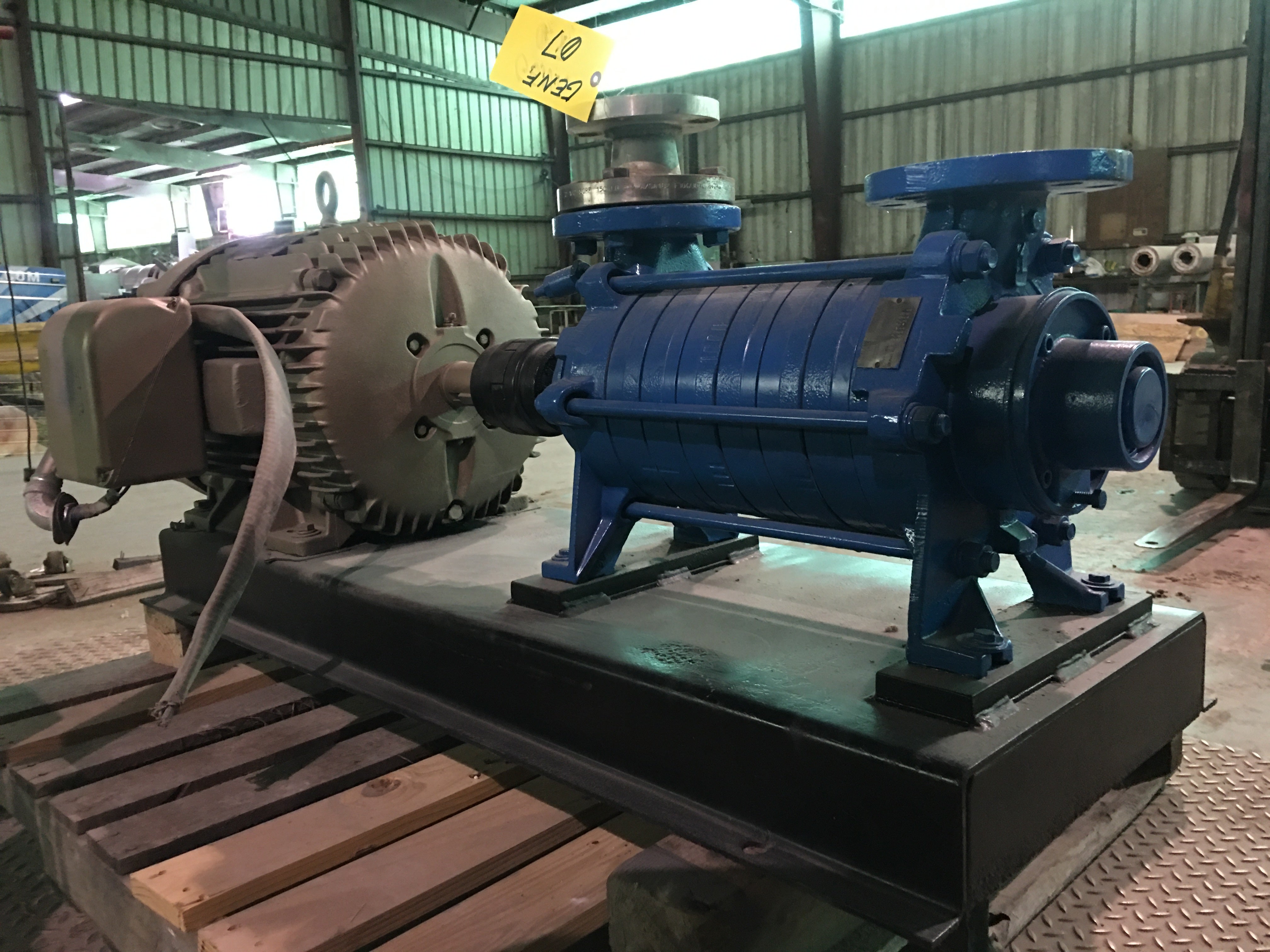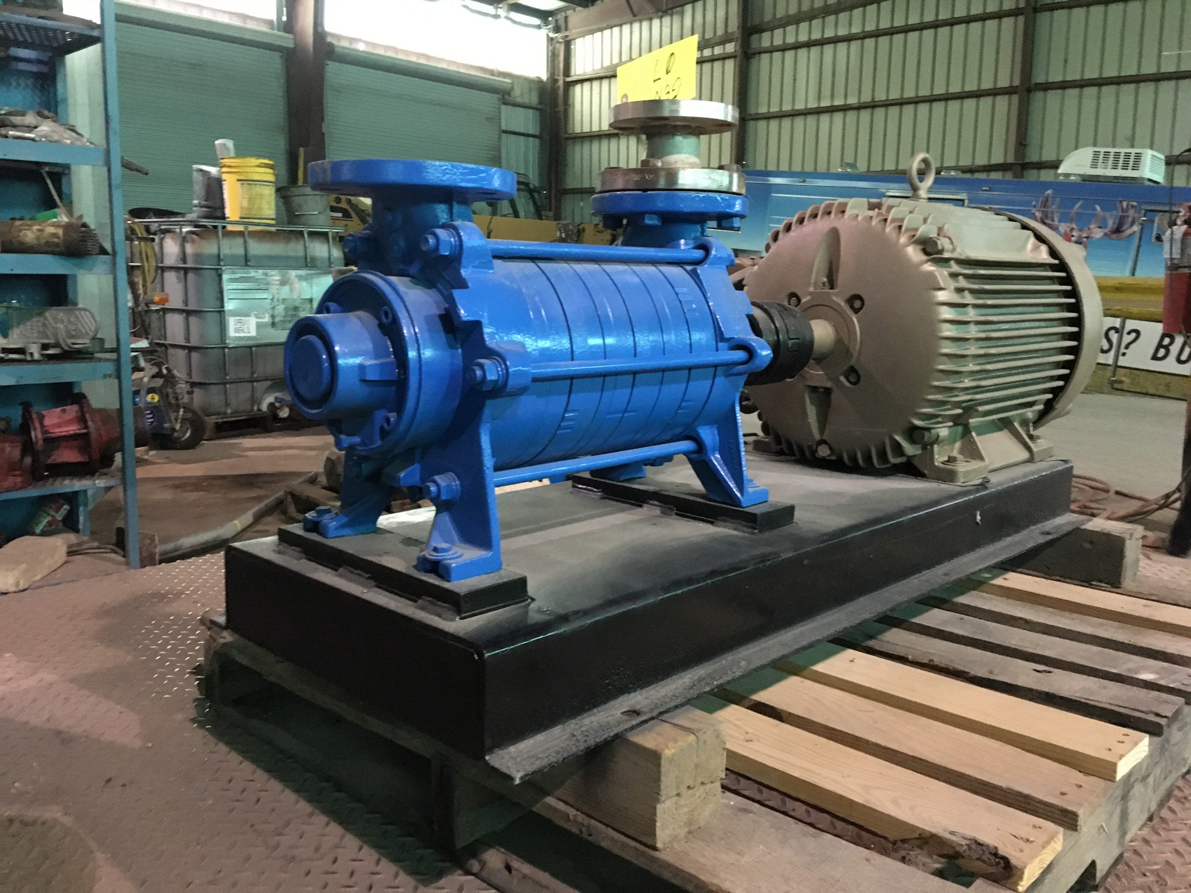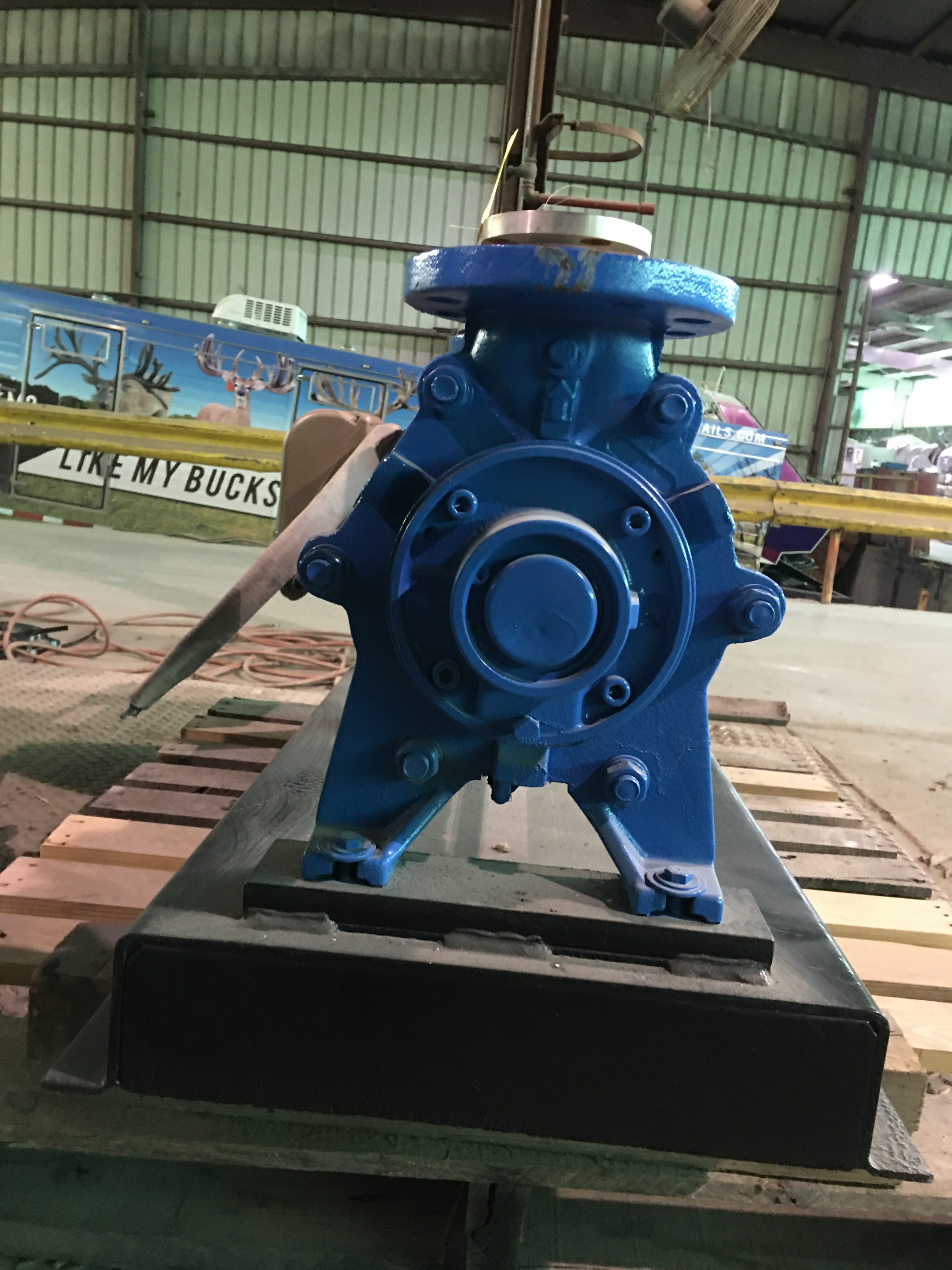 Travaini Pump: Pump Type: TBH 653/2-C/6E, Serial No: CA11-3181. Head Capacity 50 to 1120 ft. Features Low Vibration and Noise level for Maximum Reliability.. Pump Size 65. Vertical PN40 Flanges. Baldor Motor: Cat No: EM4110T, Spec: 12H013Y276, Cust: P/N, Encl: TEFC, Cc: 010A, Frame: 324T, Ser No: C110120637, HP: 40, RPM: 1775, Class F, HZ: 60, PH:3, Des: B, Volts: 230/460, Code: H, Amps: 96/48, Usable at 208 102A, Rating: 40C AMB-CONT, Nema Nom Eff: 94.1.