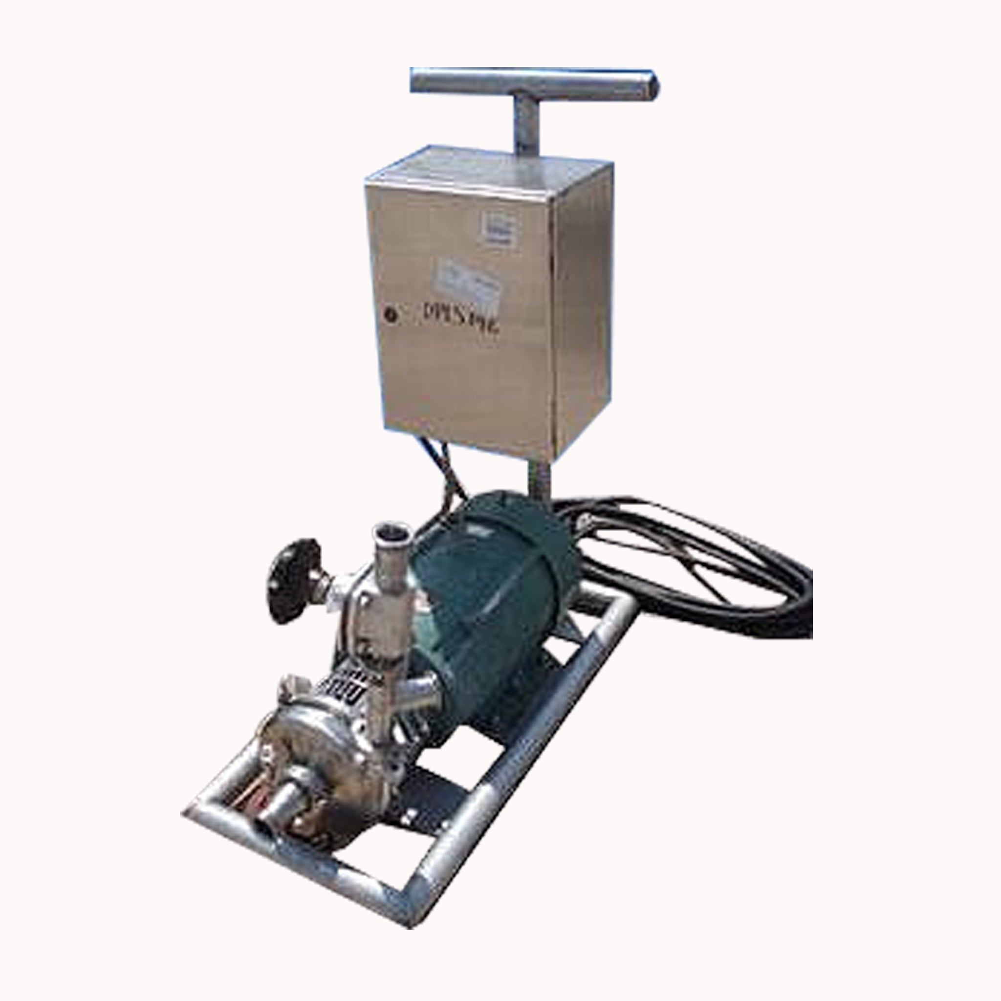 Tri Clover Centrifugal Pump. Model: C216MD21T-9. S/N: 124656. Impeller diameter: 5 in. Reliance Electric Motor, 7.5 hp, 3500 rpm, 230/460 V, 20.8/10.4 amps, 60 Hz, 3 phase. Allen Bradley PowerFlex 70 Control Panel with push buttons and digital display. Inlets: (1) 1-1/2 in. dia. NPT (male). Outlets: (1) 1-1/2 in. dia. S-Line. Overall dimensions: 32 in. L x 17 in. W x 43 in. H.